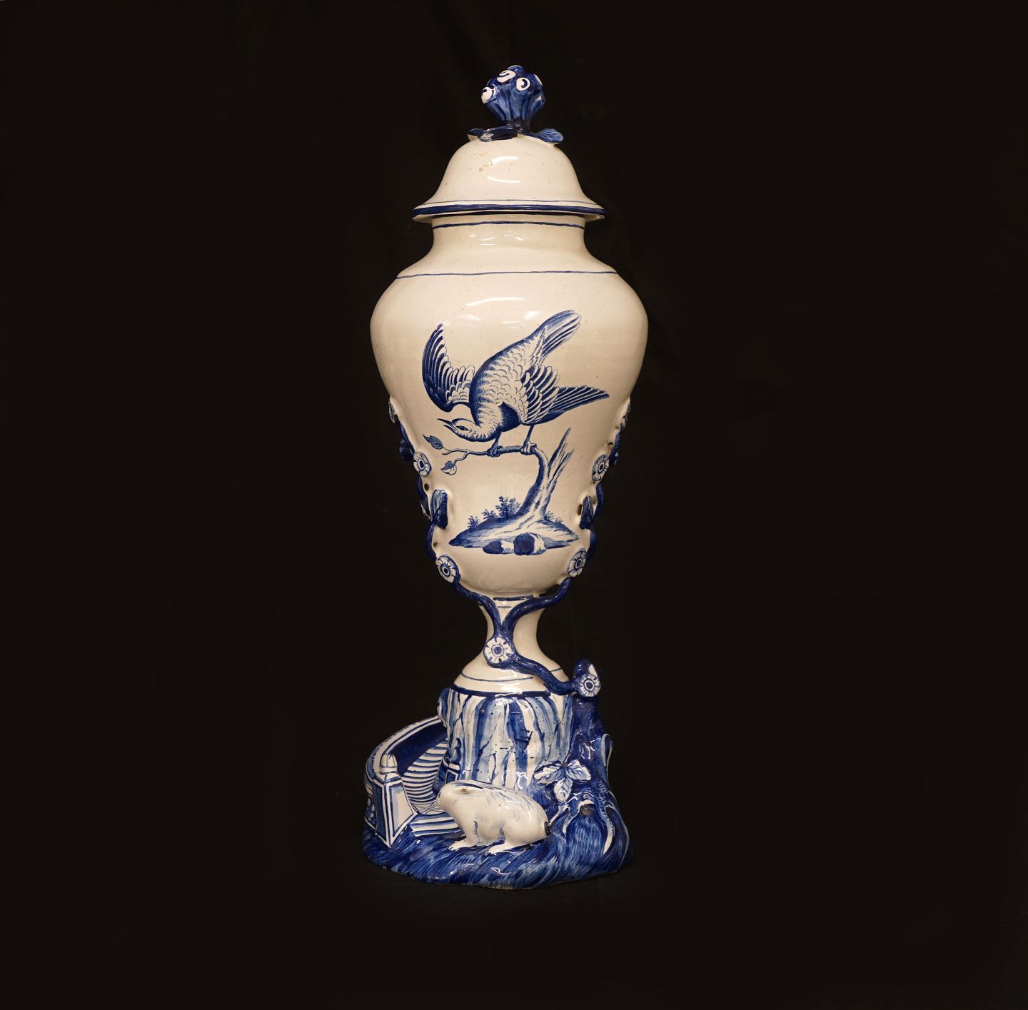 Blaudekorierte Kaninchenvase aus Fayence. Marieberg am 03.10.1772. H: 37cm