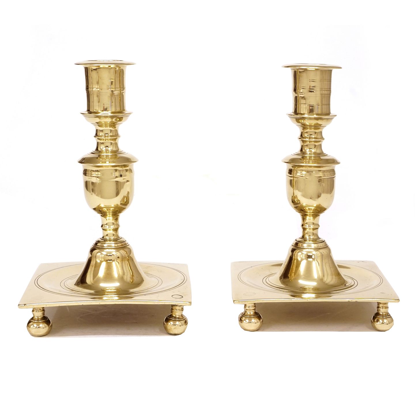 Ein Paar Schlossleuchter aus Messing. Dänemark um 1720-40. H: 23cm. Fuss: 15x15cm
