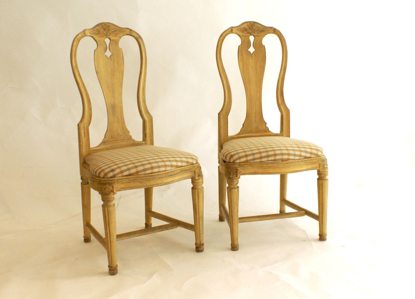 Et par originaldekorerede salonstole, gustavianske.