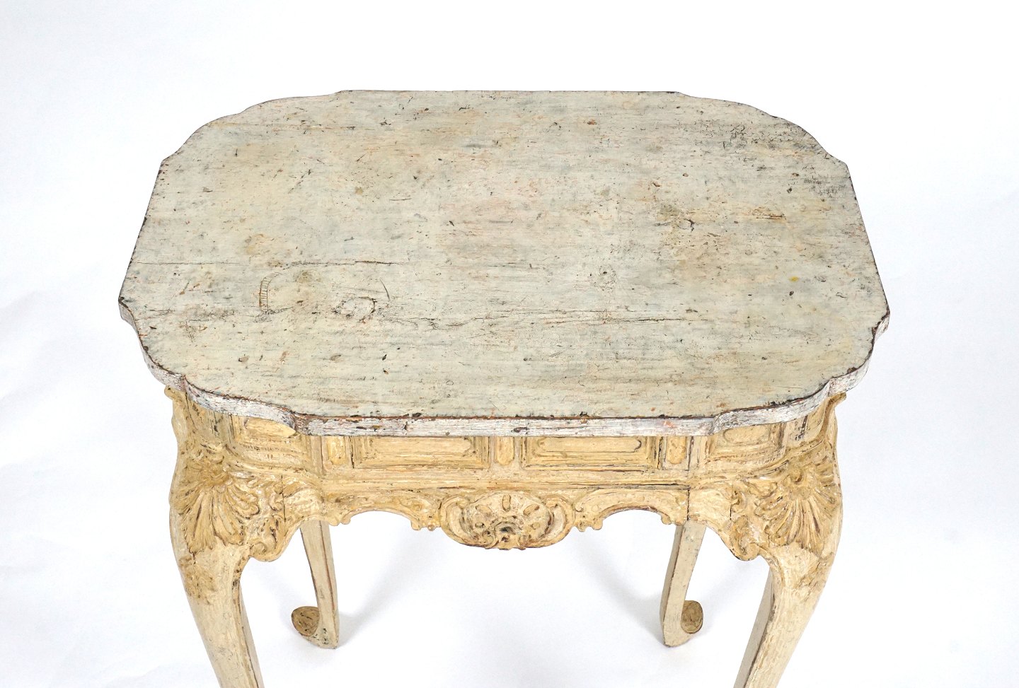 Origininal decorated Rokoko table Denmark around 1760 H: 71cm. Plate: 43x59cm Item number: 21698