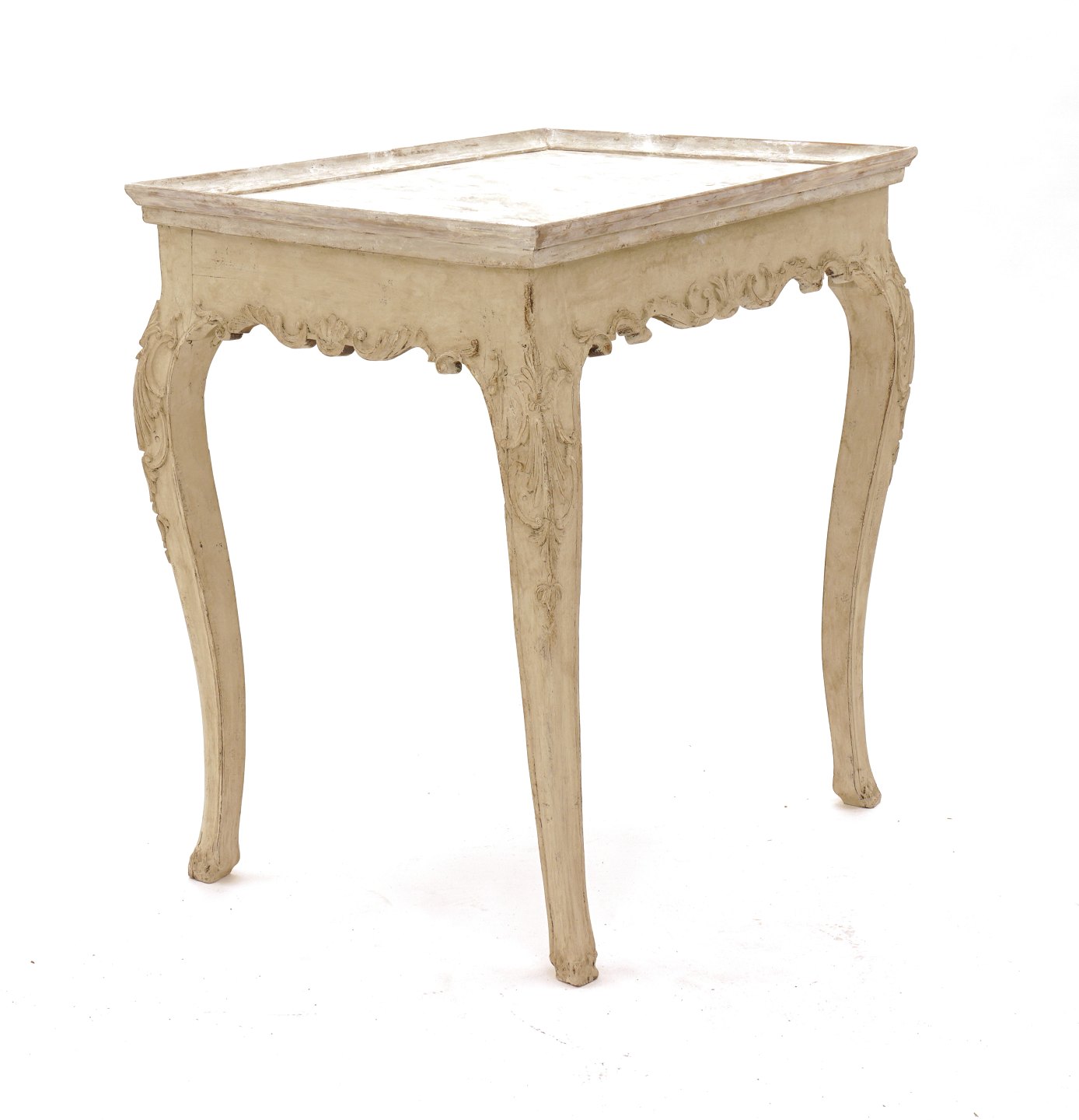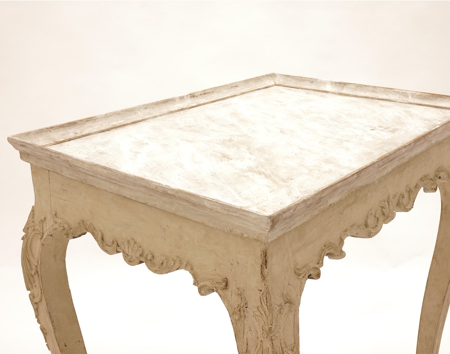 Grå/hvidt dekoreret bakkebord. Gustaviansk form. Sverige ca. år 1880