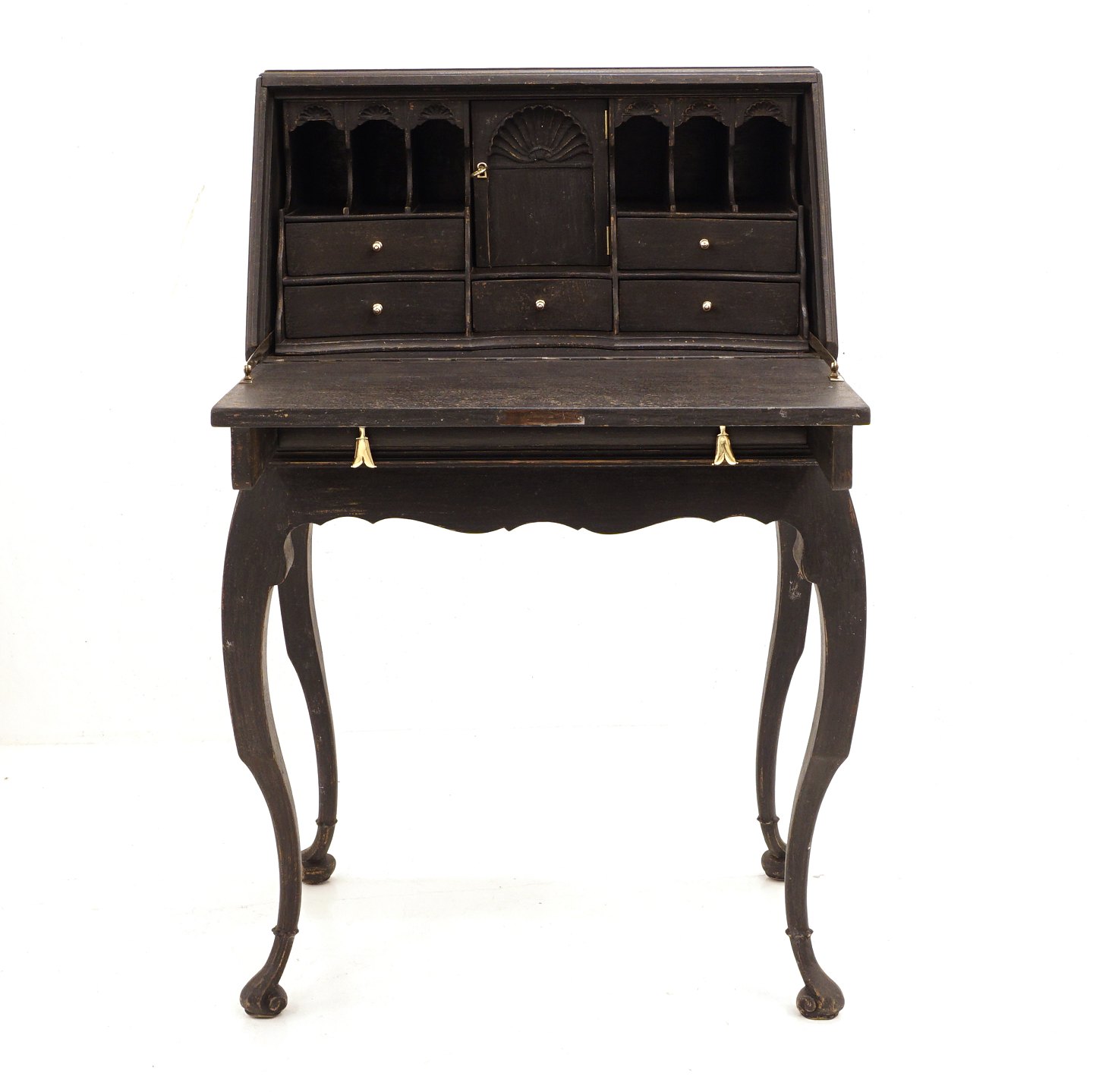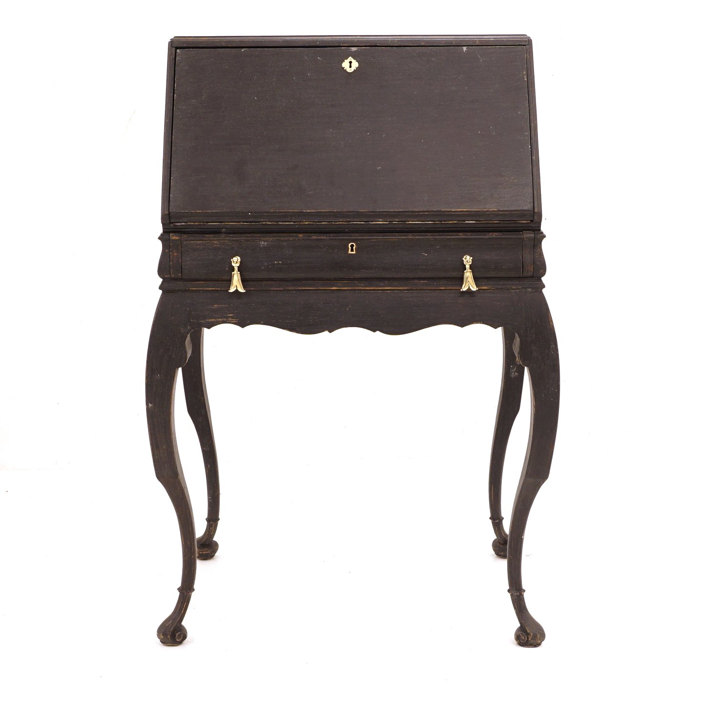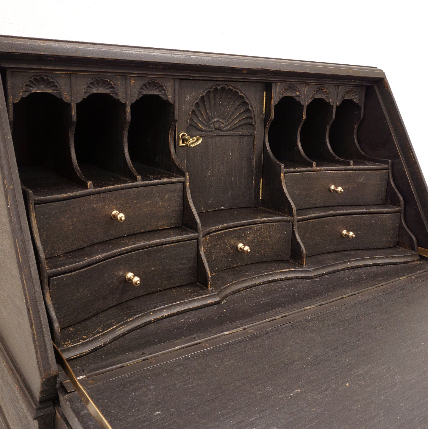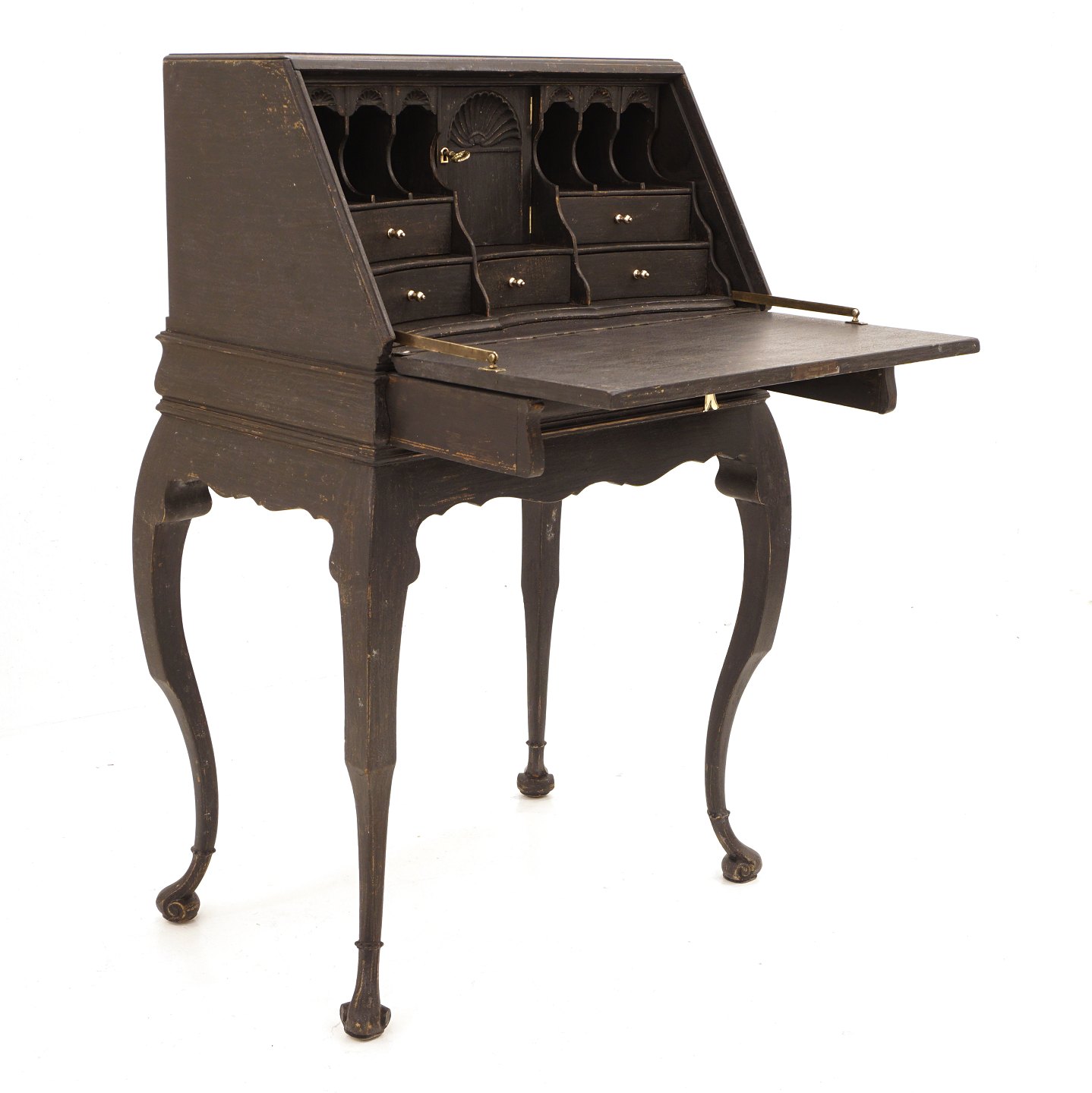 Sortmalet sekretær med cabriole ben. Rokokoform ca. år 1860