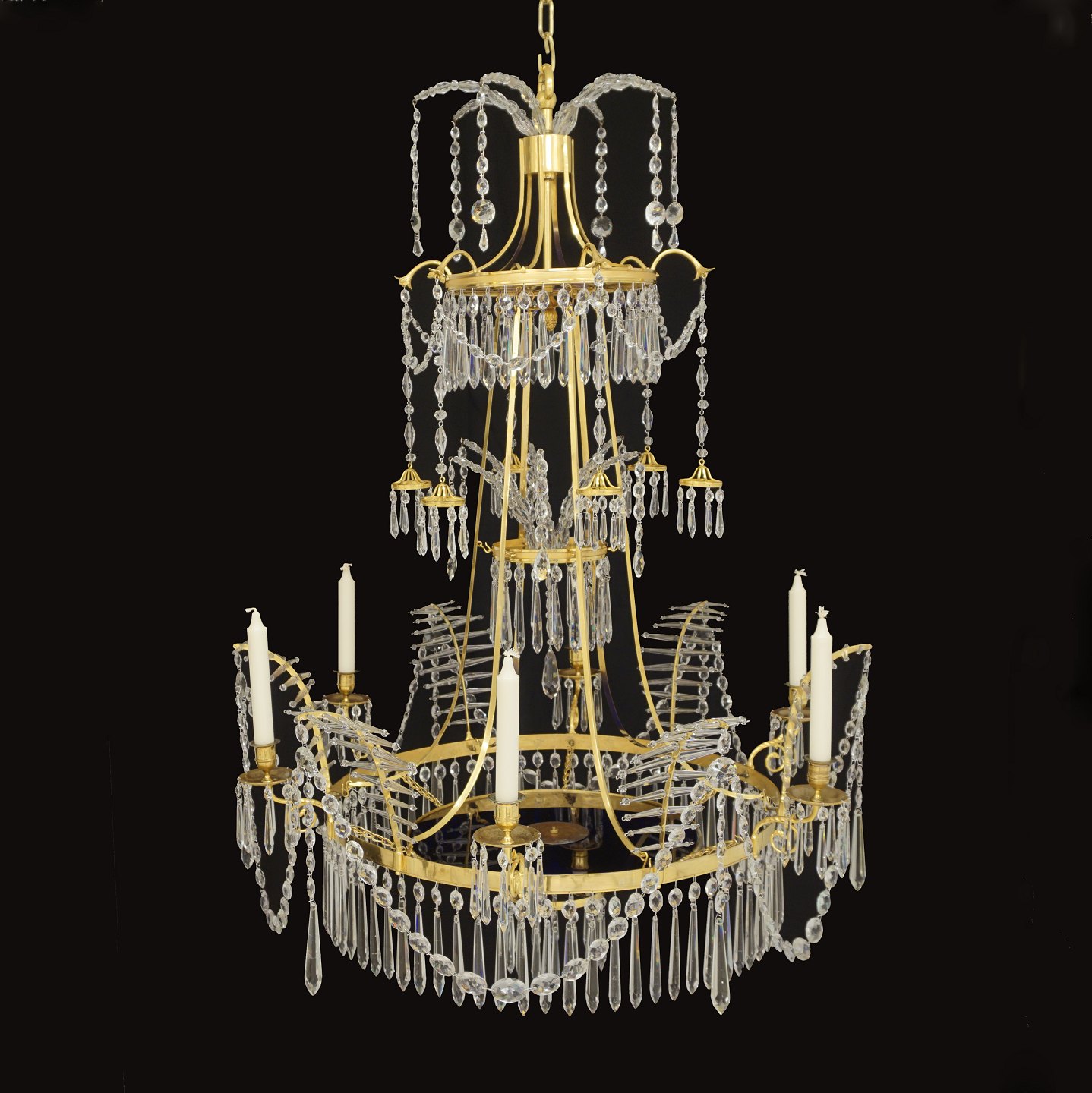 An impressive crystal chandelier in the manner of Werner & Mieth, Berlin. Louis XVI around 1800. H: 103cm. D: 80cm