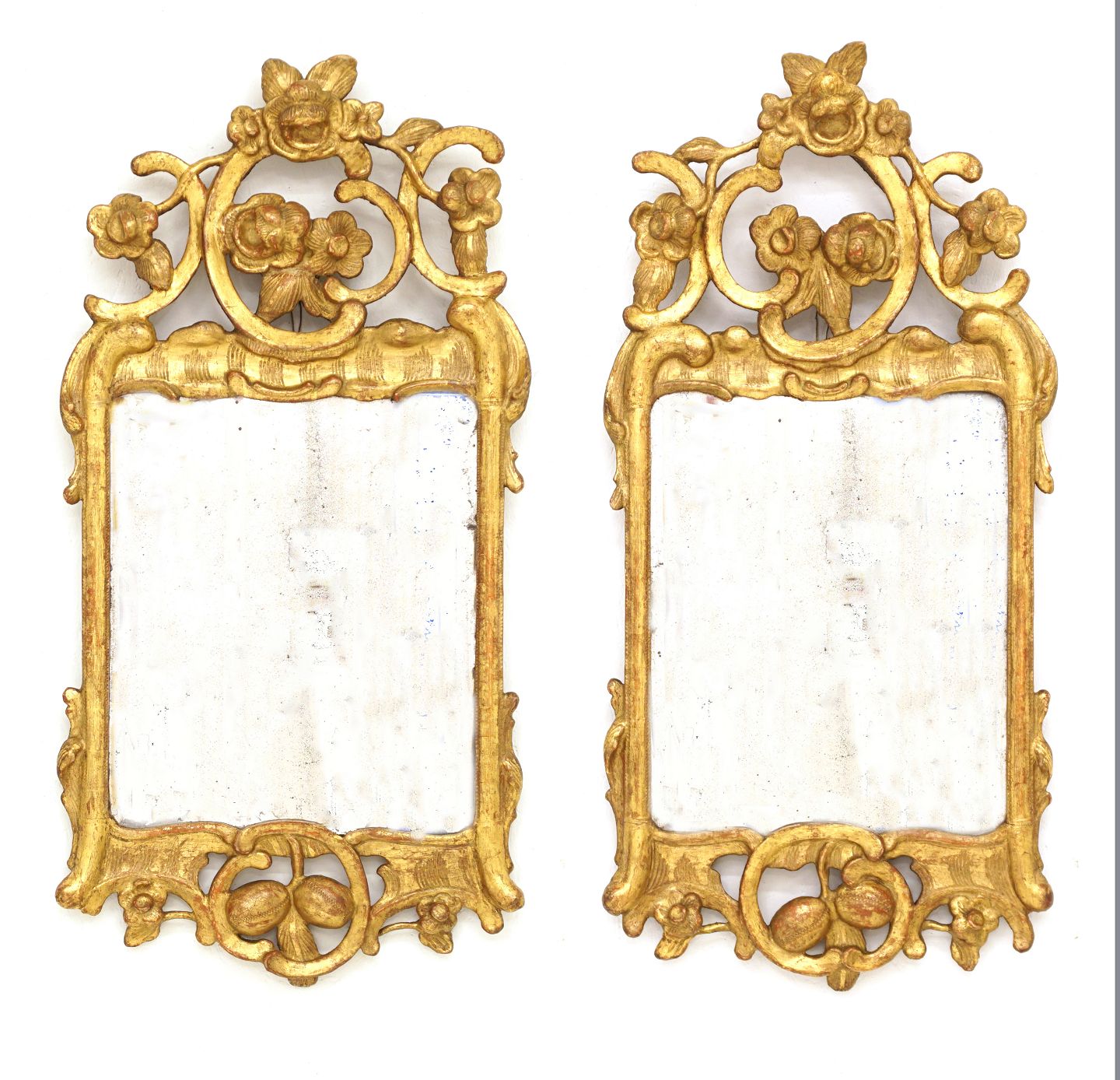 Et par forgyldte rokoko spejle. Slesvig-Holsten ca. år 1760. 73x37cm