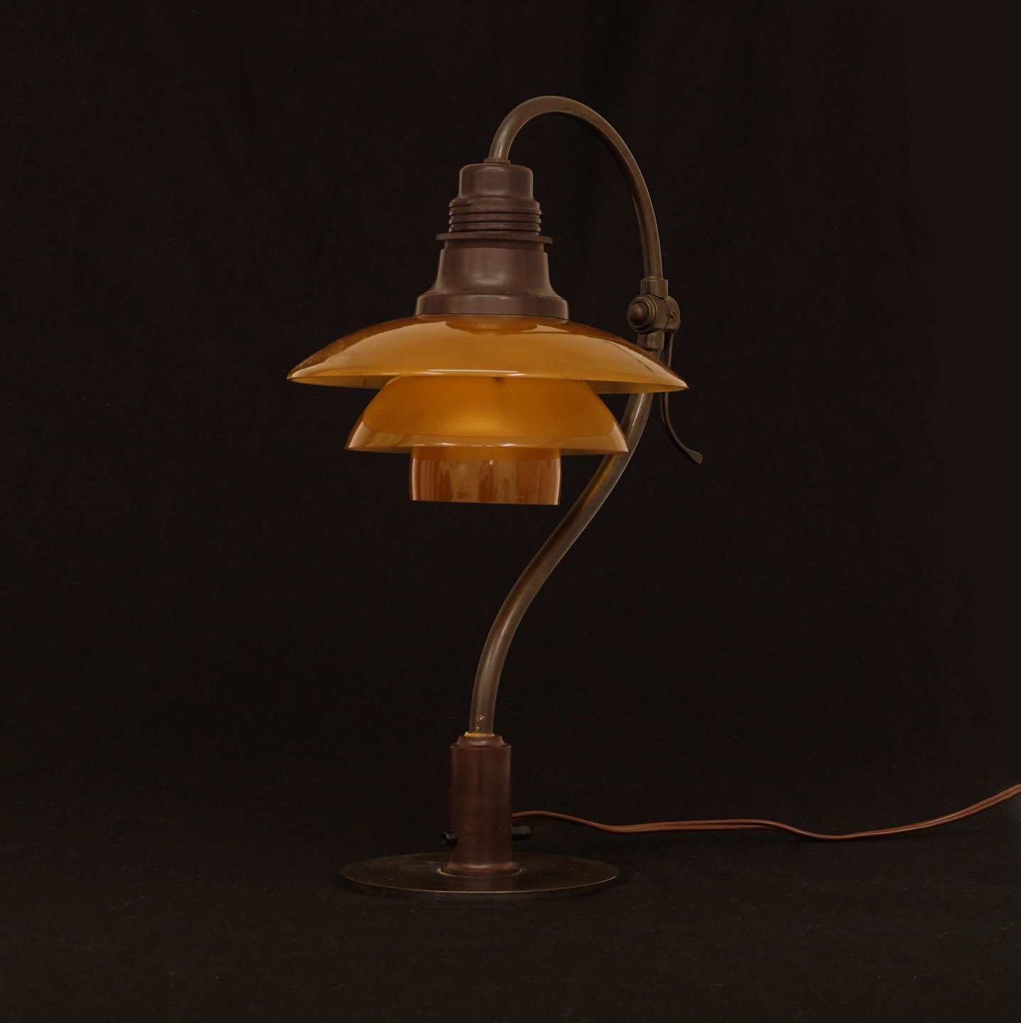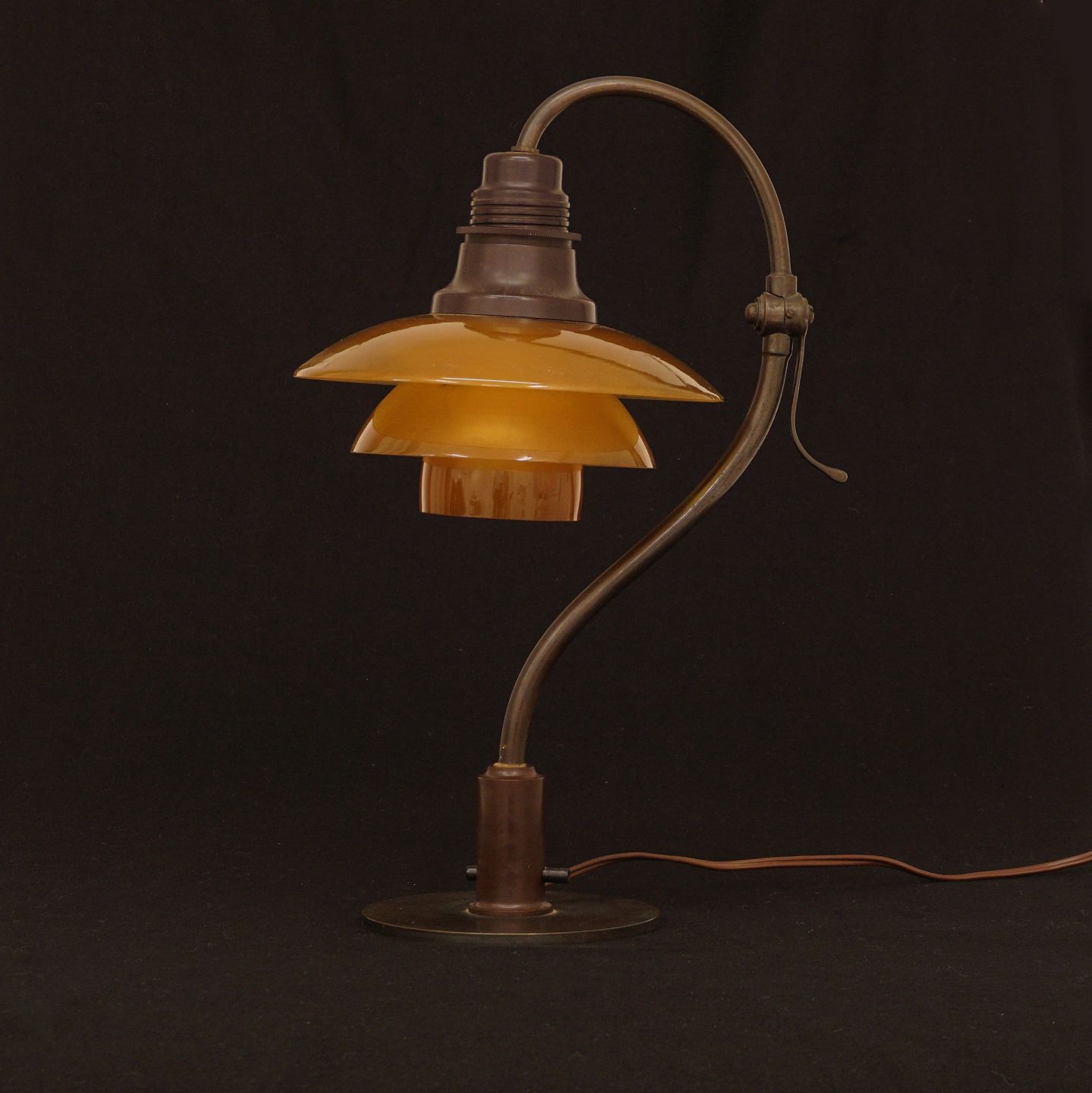 Poul Henningsen, 1894-1967, for Louis Poulsen: Table lamp "Question Mark", PH 2/2. burnished brass. Original glass