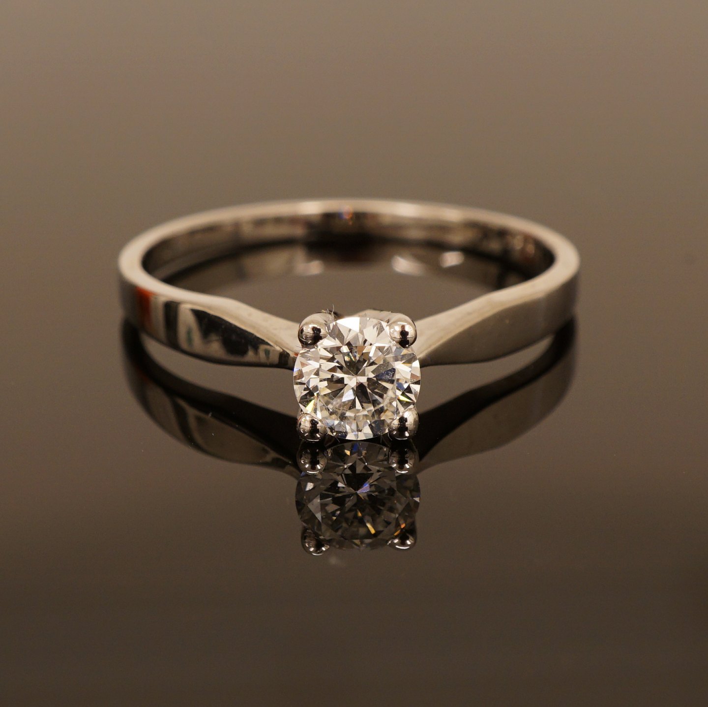 14kt hvidguldsring med brillantsleben diamant på ca. 0,43ct. Ringstr. 56