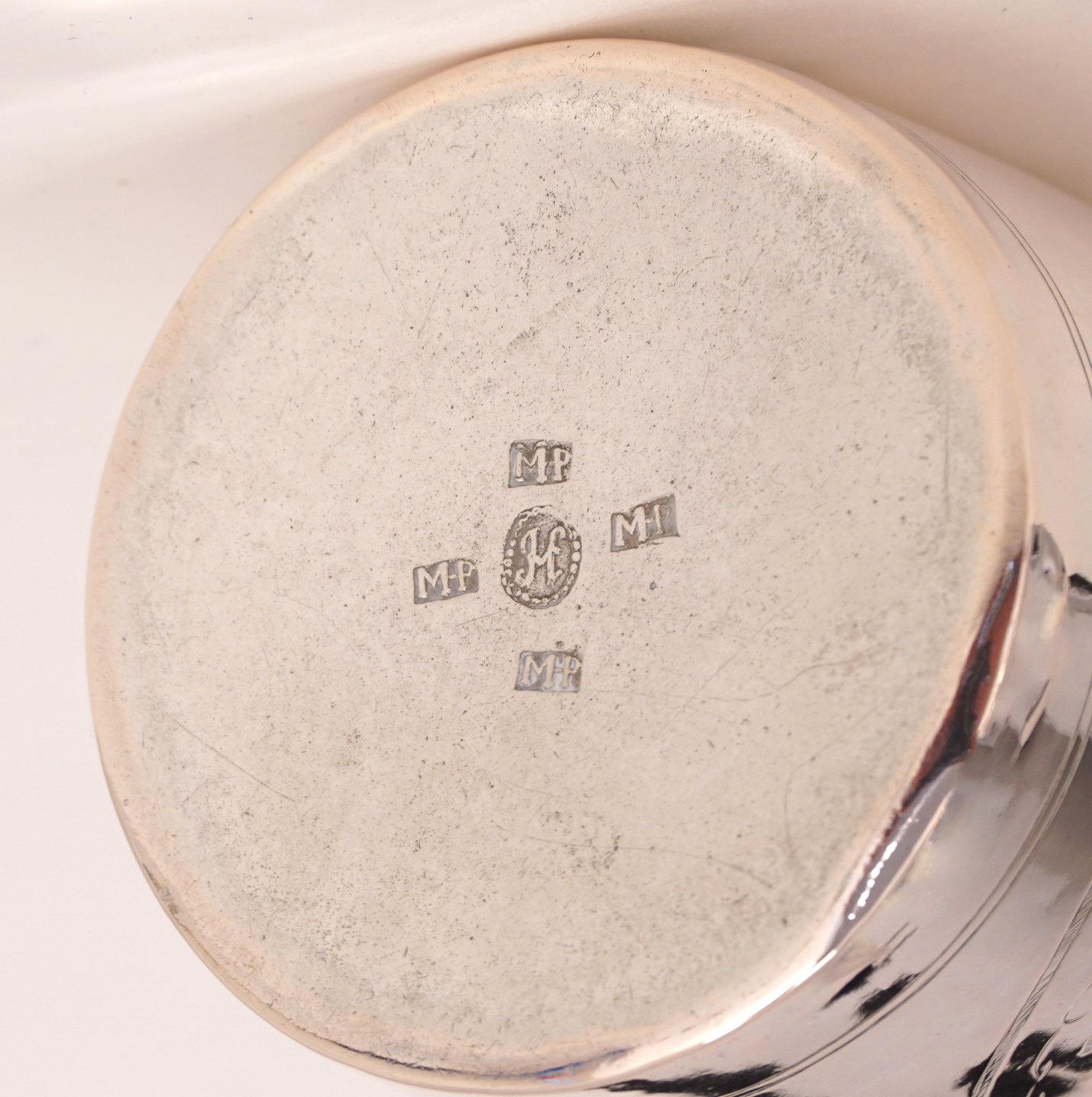 Stort sølvbæger med blomster i kartoucher. Martin Hinrich Petersen, 1792-1809, Haderslev. H: 9,6cm. V: 109gr