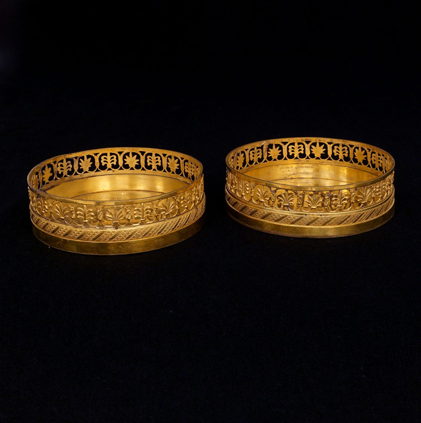 A pair of gilt coasters. France circa 1810. H: 4cm. D: 13cm