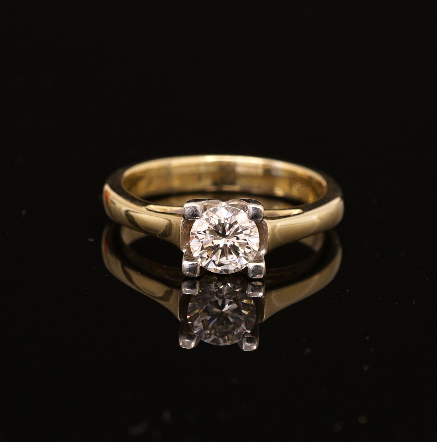 Ring with brillant cut diamond of circa 0,65ct. Ring 14ct Gold. Ringsize: 54