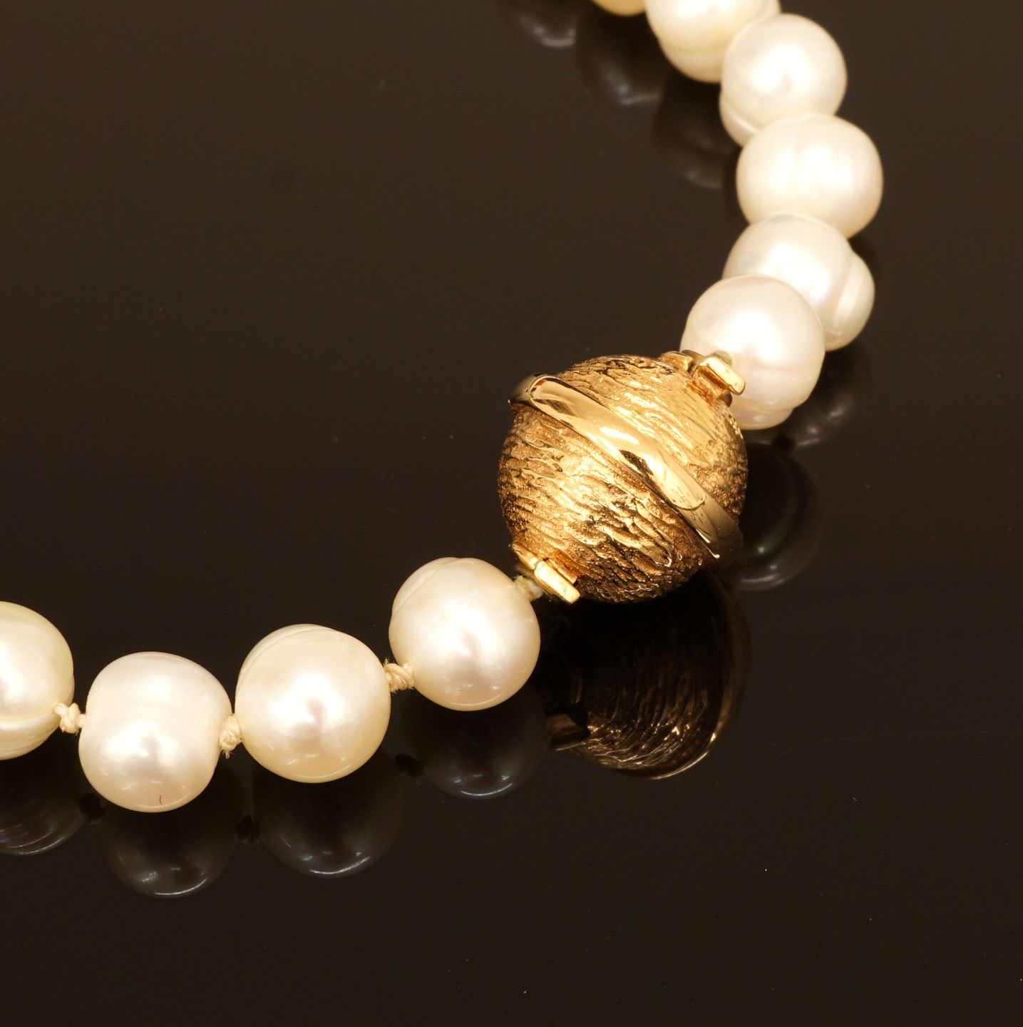 Per Borup: Perlekæde med kuglelås i 14kt guld