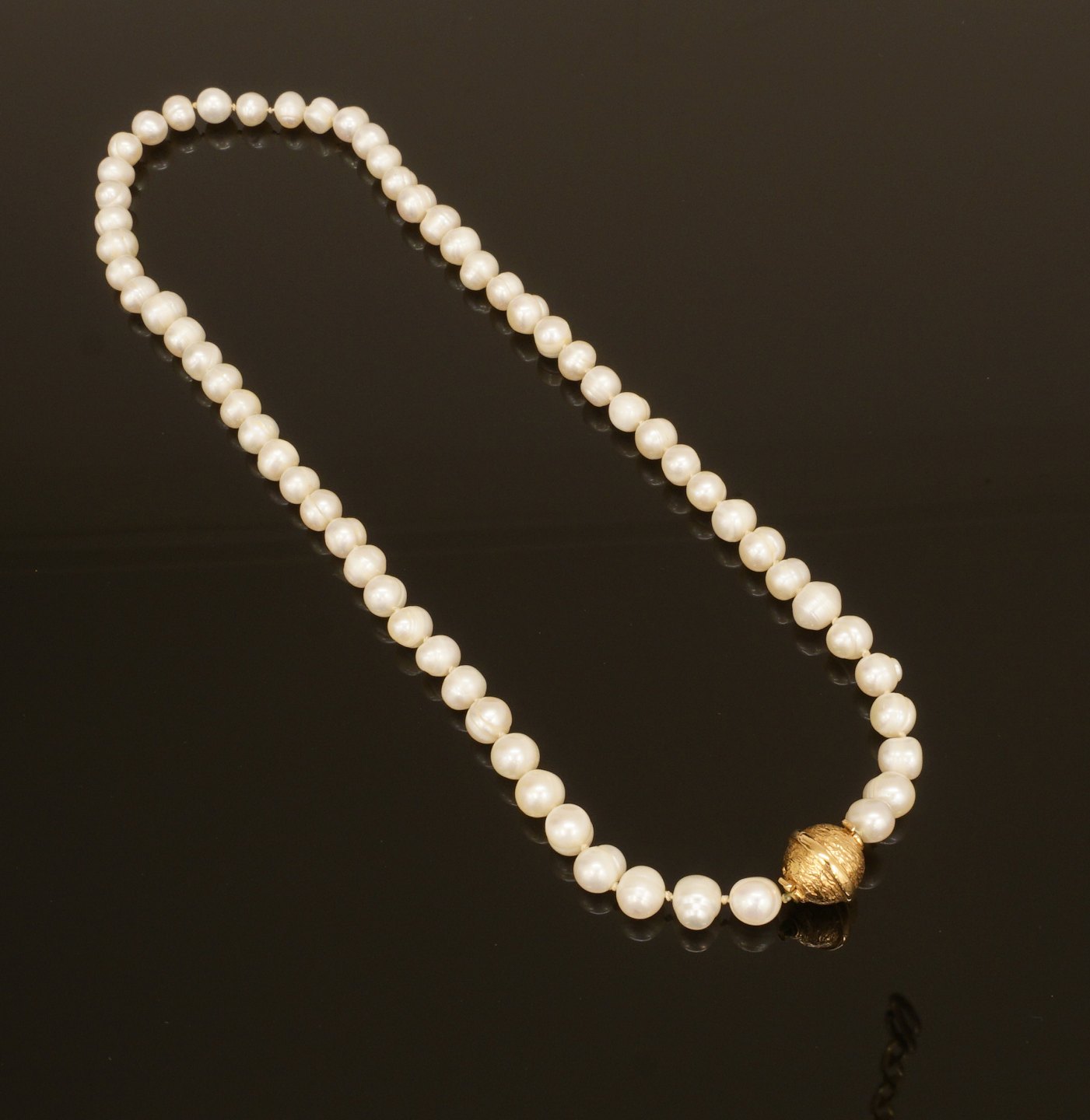 Per Borup: Perlekæde med kuglelås i 14kt guld D: 11mm