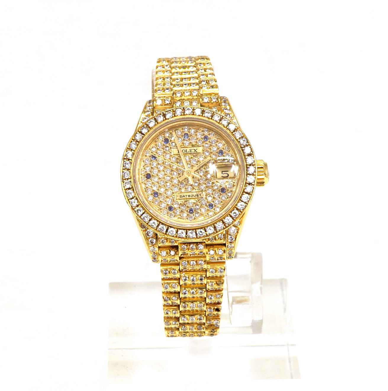 Rolex Datejust i 18kt guld og rigt besat med diamanter. Leveres med box og certifikat. Ref. 69178. Årgang 1987. D: 26mm