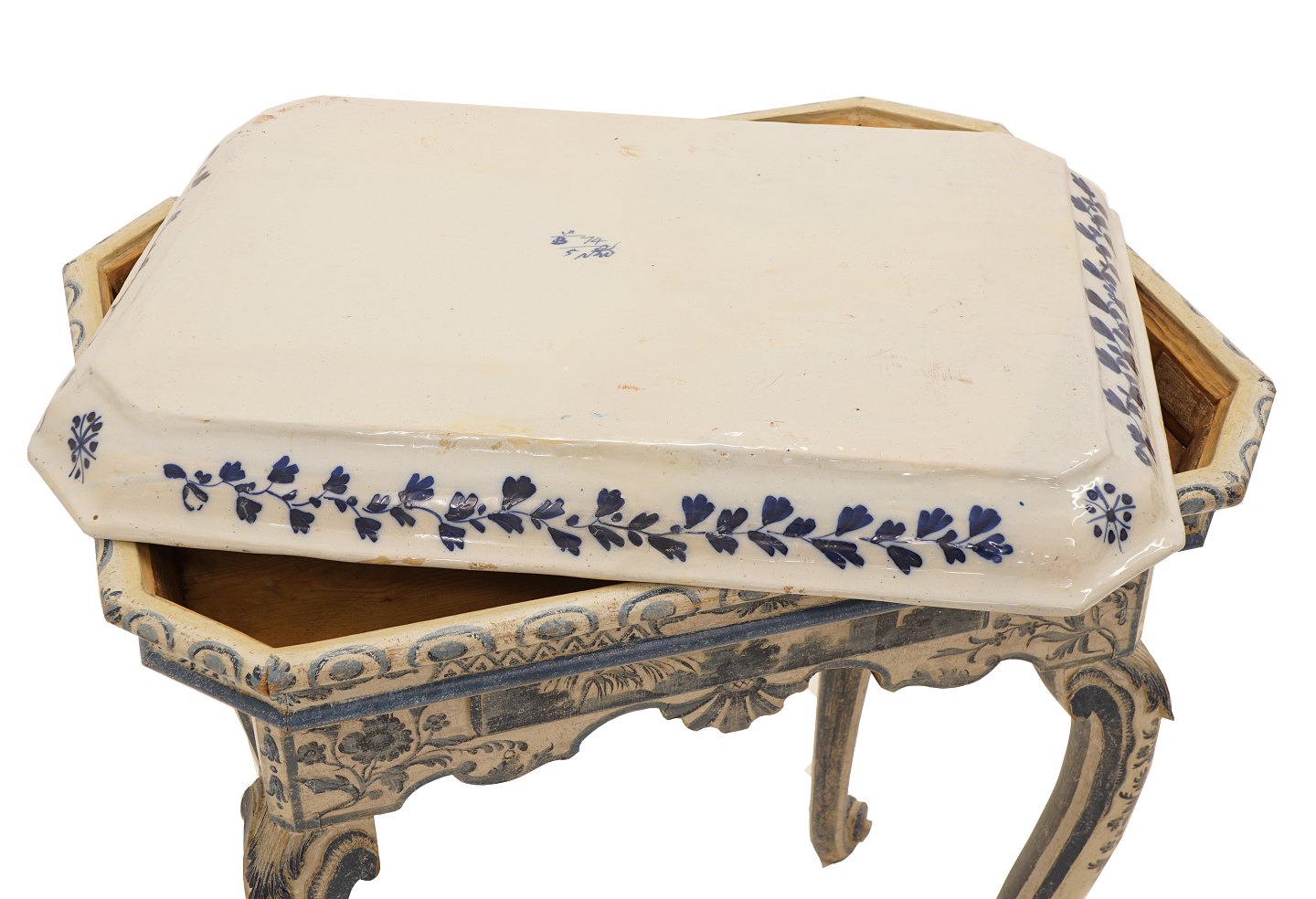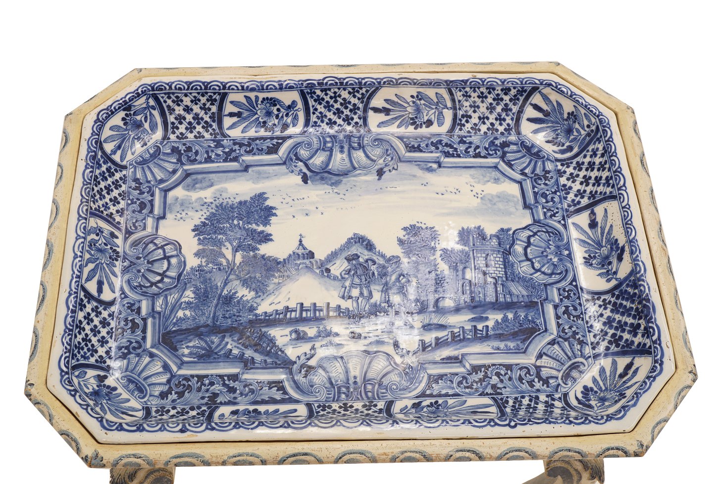 Store Kongensgade faience table-top tray. Made circa 1740. Signed. H: 75cm. Table: 73x55cm