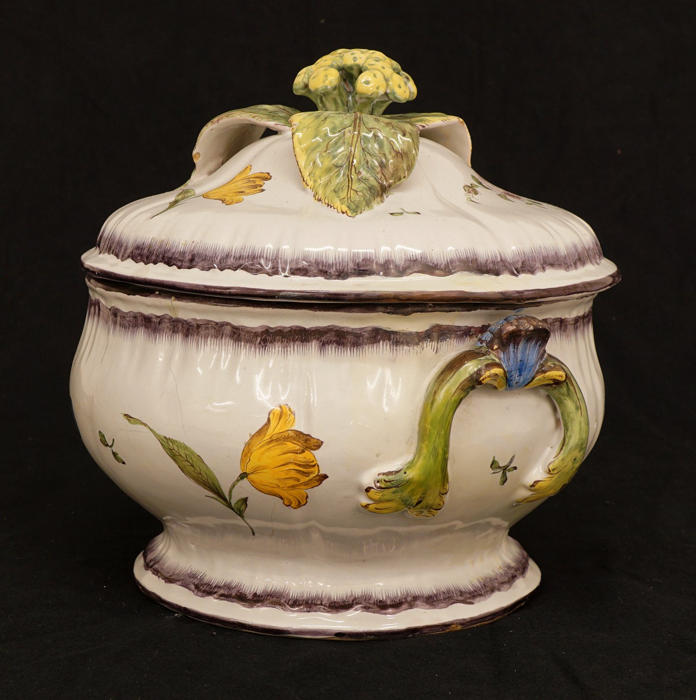 Faience tureen made in Stralsund circa 1770. H: 26cm. D: 30cm