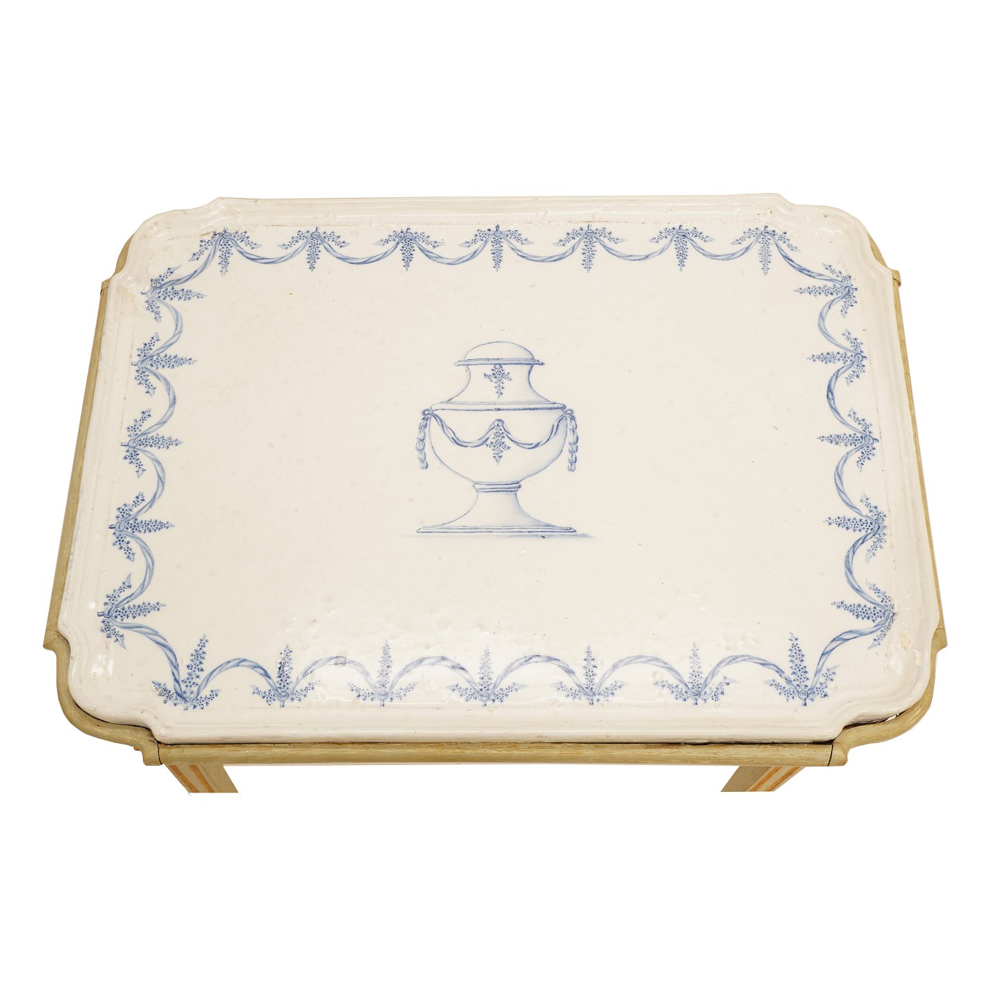 H: 77cm. Tray: 74x54cm"> H: 77cm. Tray: 74x54cm"> Aabenraa Antikvitetshandel * Hannoversch-Münden faience table-top tray * Signed "CCC" for Münden and "P" for H: 77cm. Tray: 74x54cm">