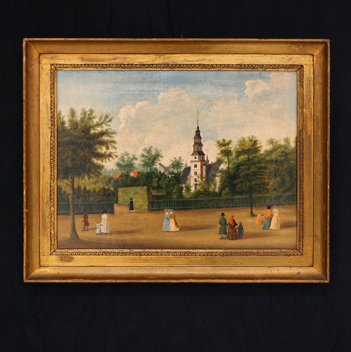 Byparti fra København, olie på lærred. Rosenborg Slot set fra Gothersgade omkring år 1800.