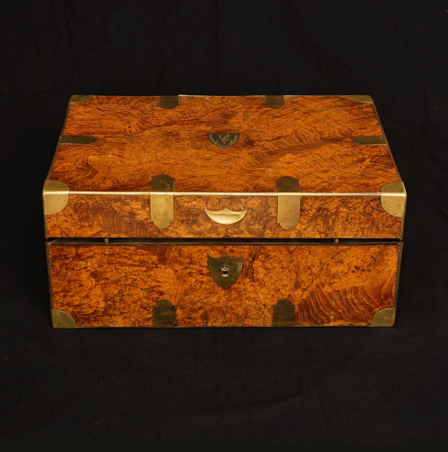 An almost complete Toilet-Box with circa 50 pieces. France circa 1880. H: 16cm. W: 38cm. D: 26cm