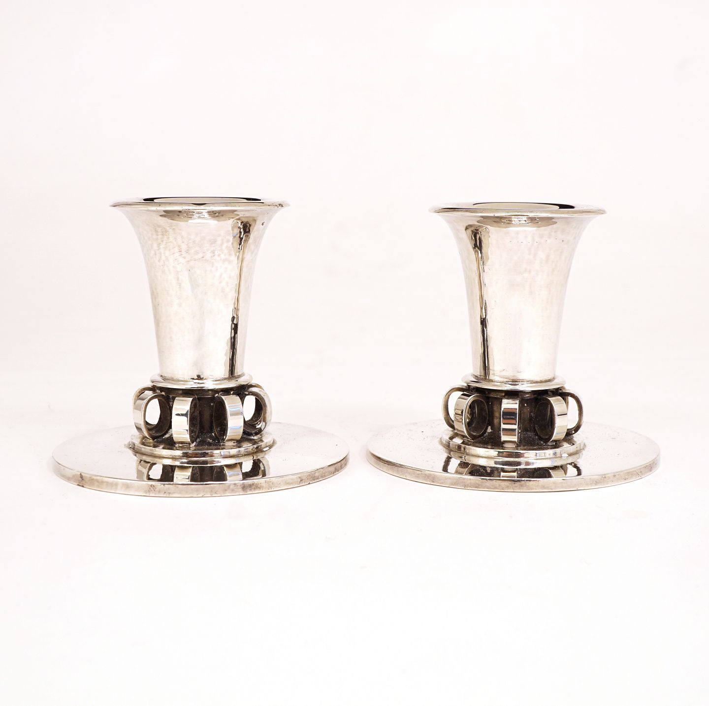 Oscar Gundlach-Pedersen for Georg Jensen: A pair of candlesticks #539. Sterlingsilver H: 7,5cm. W: 354gr Item number: 28053