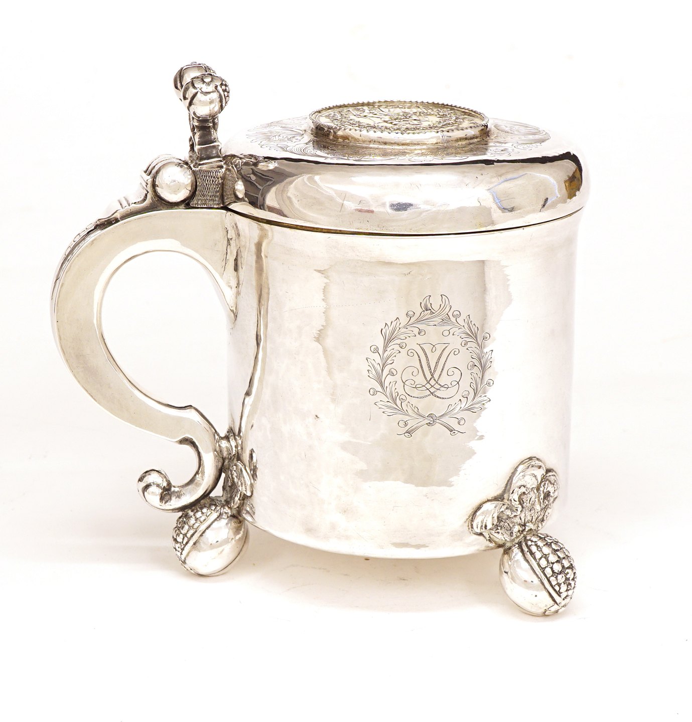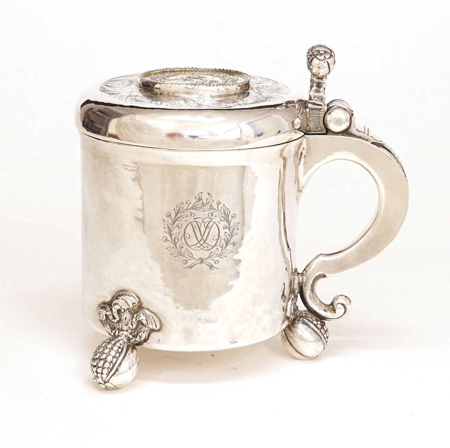 A Baroque Silver Tankard. Simon Matthiesen, Odense, Denmark, 1651-97. Of the collection of Ole Olsen, Denmark. Sold at his auction 1953. H: 15,5cm. W: 660gr
