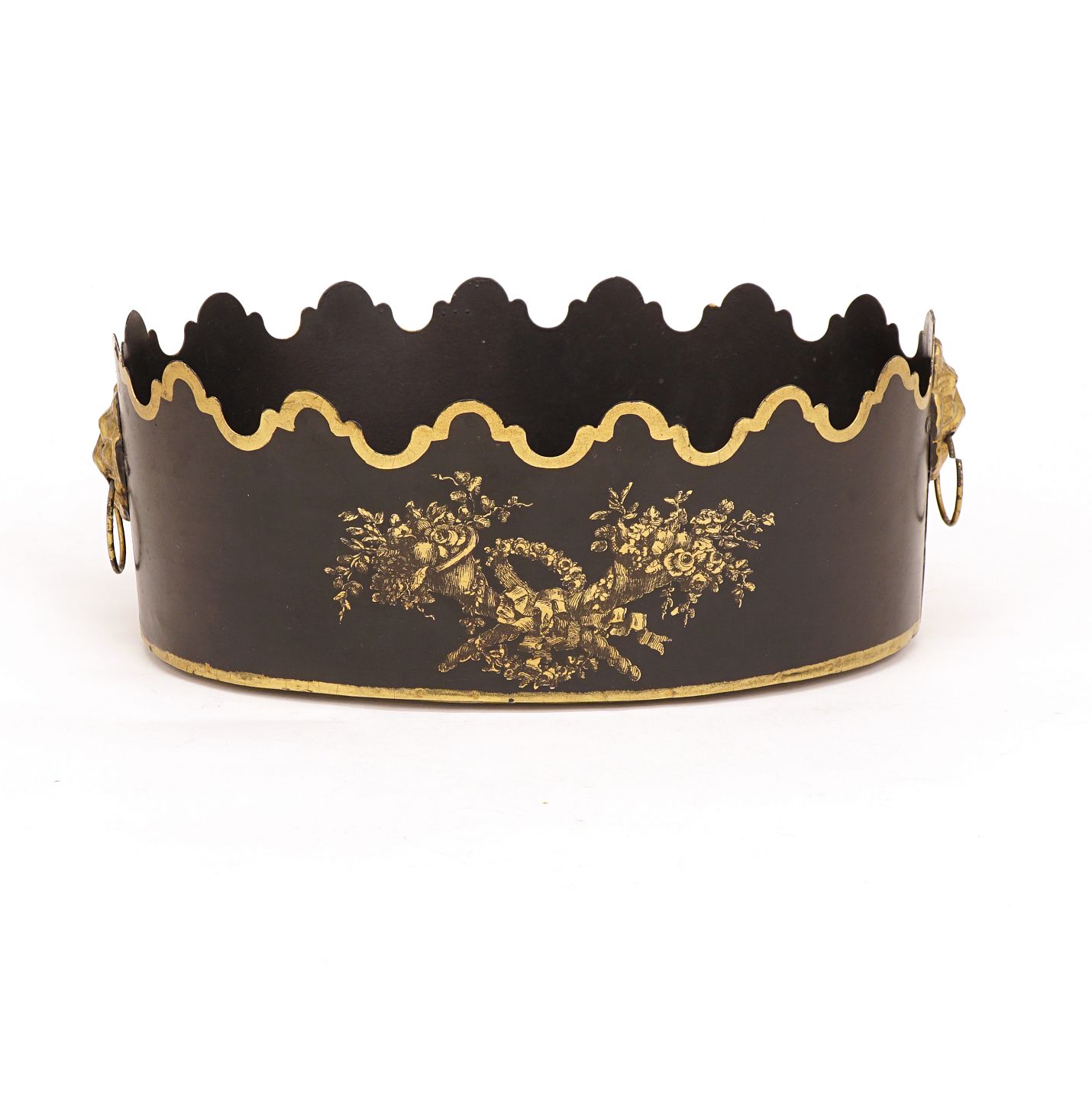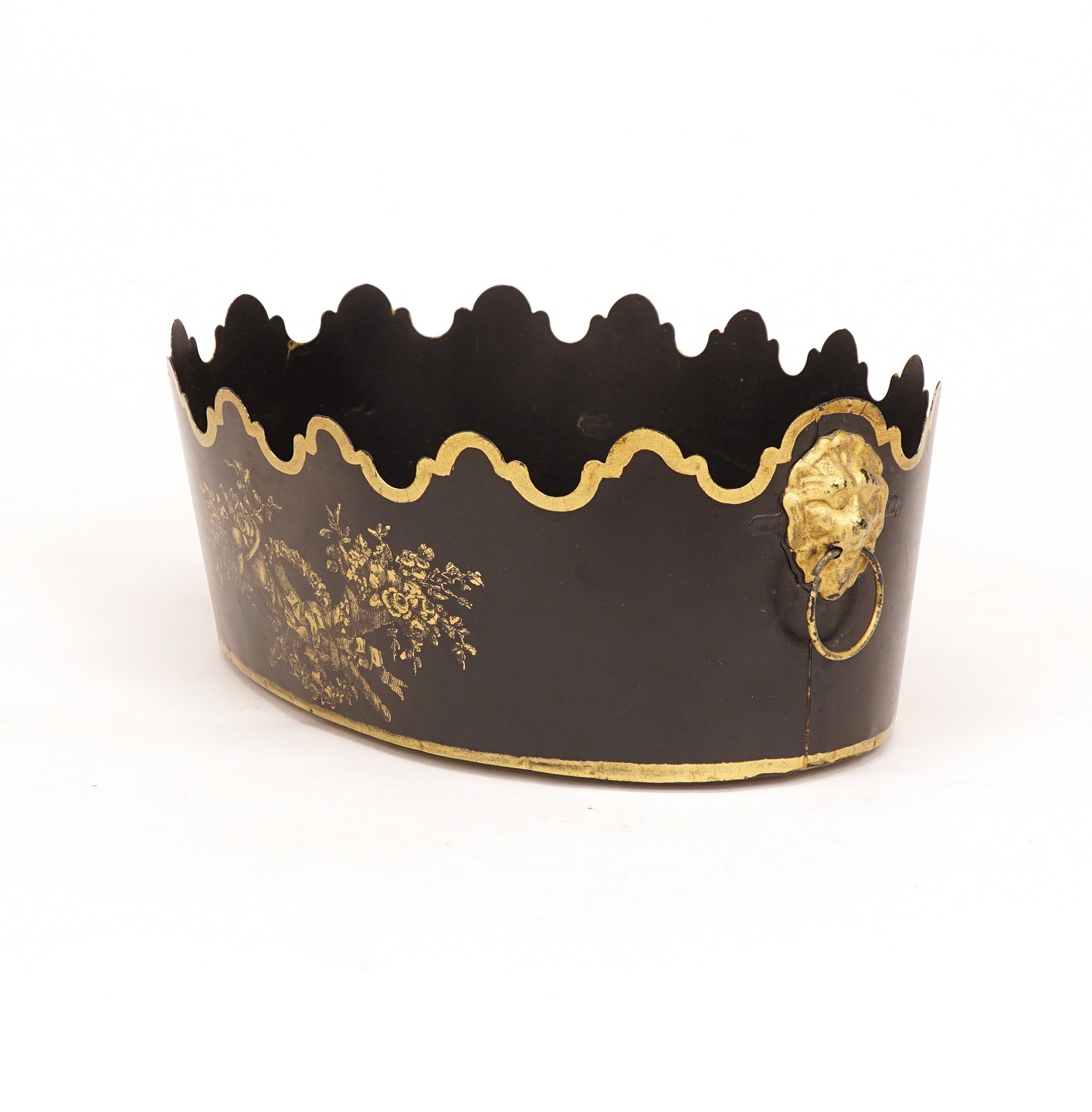 Glaskøler af sortdekoreret metal med forgyldninger. Danmark ca. år 1840. H: 11cm. 30x22cm
