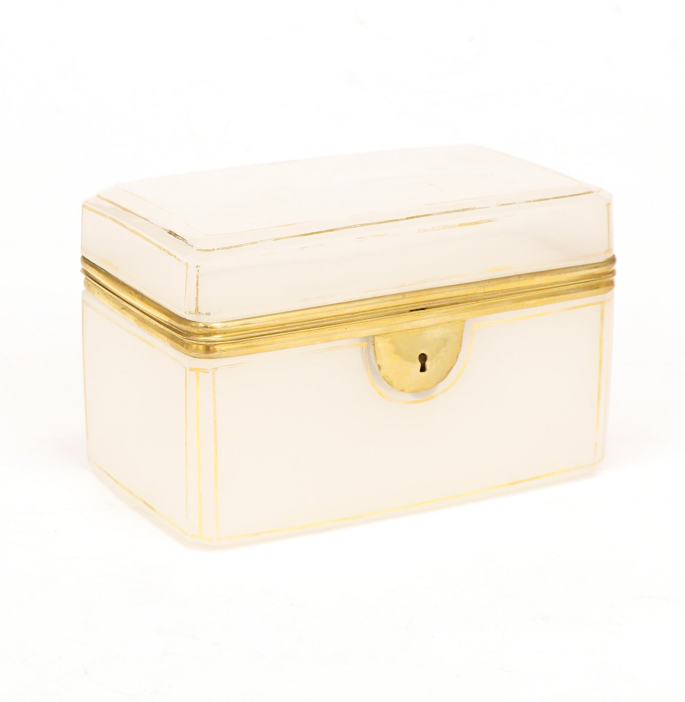 Sugarbox of white opal glass. France circa 1840. H: 9,5cm. W: 14,5cm