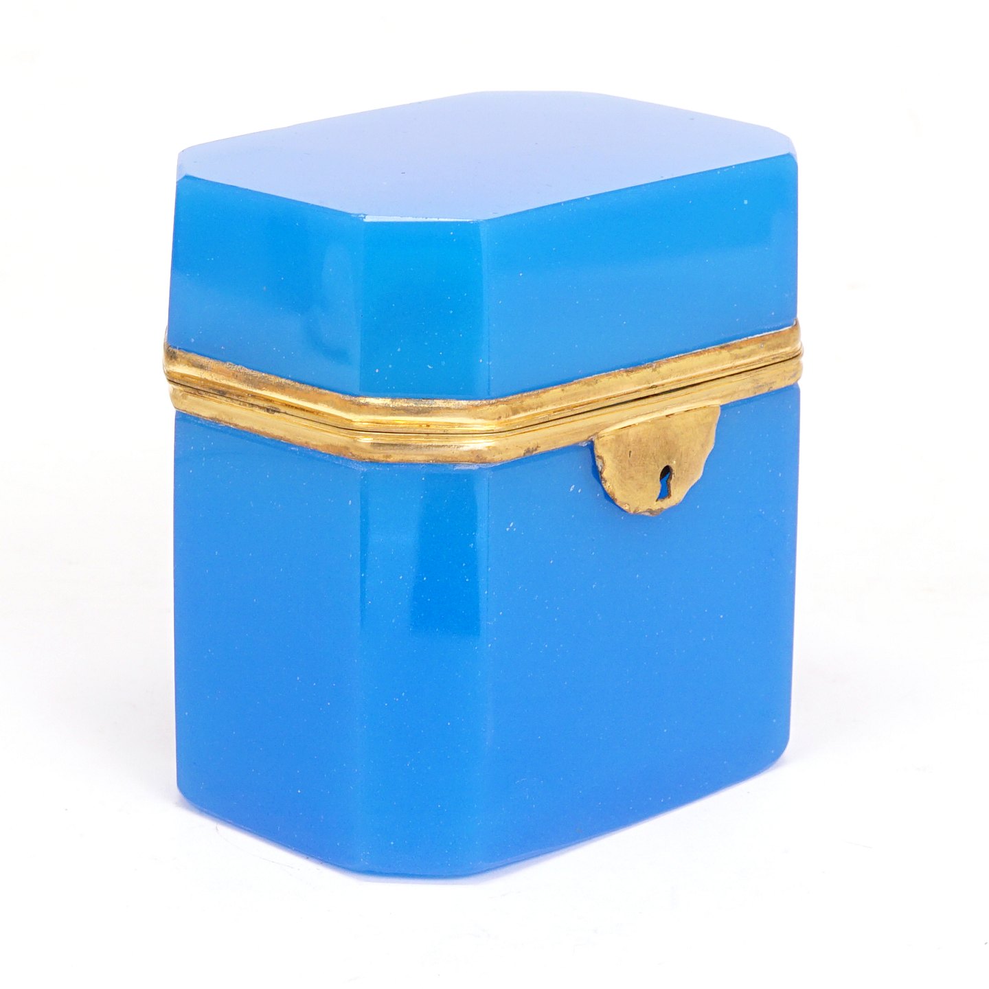 Kandisskrin i blåt opalineglas. Frankrig ca. år 1840. H: 10cm. B: 10cm