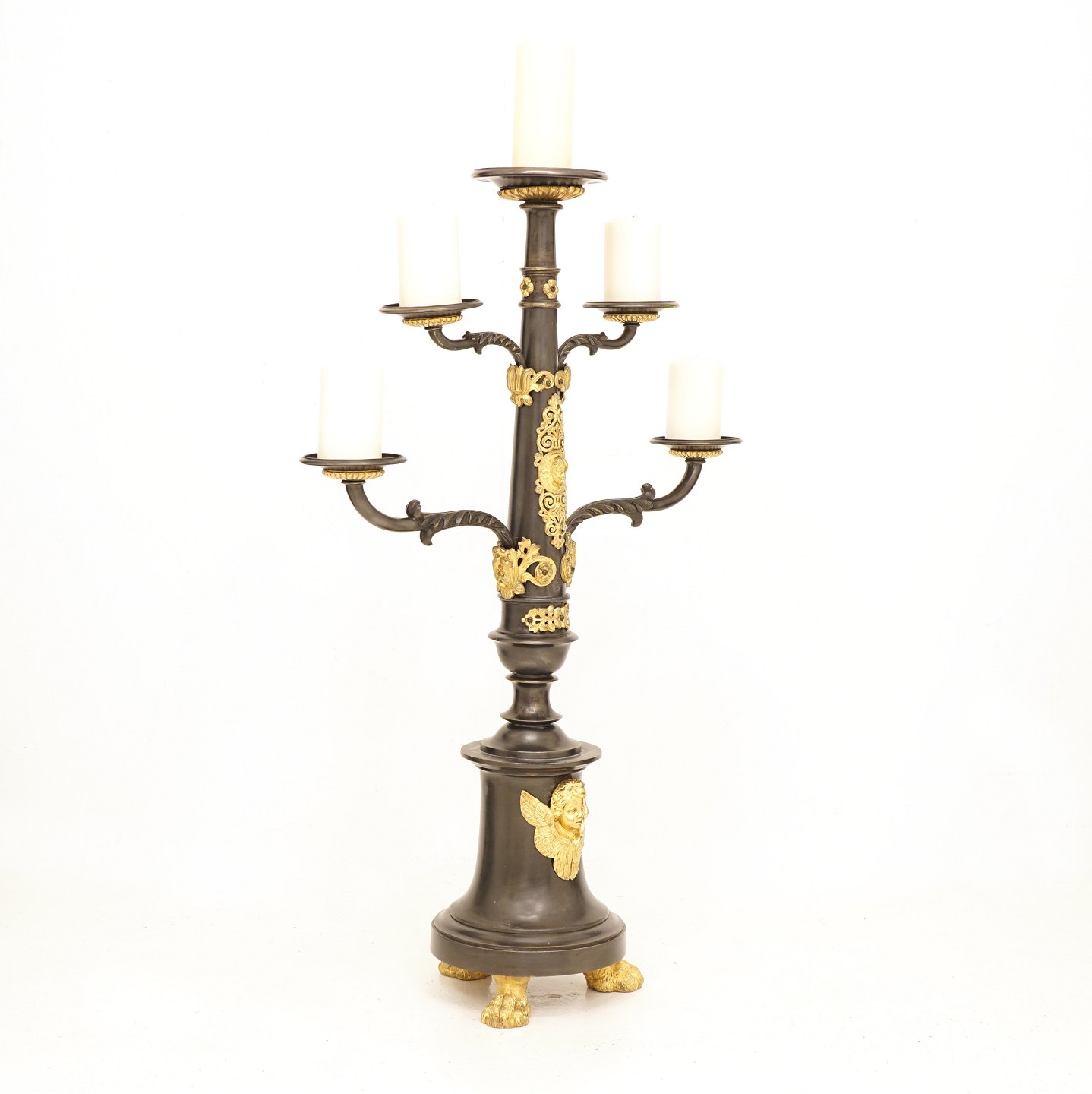 A large gilt bronze candlestick for five candles. France circa 1850. H: 95cm. W: 66cm