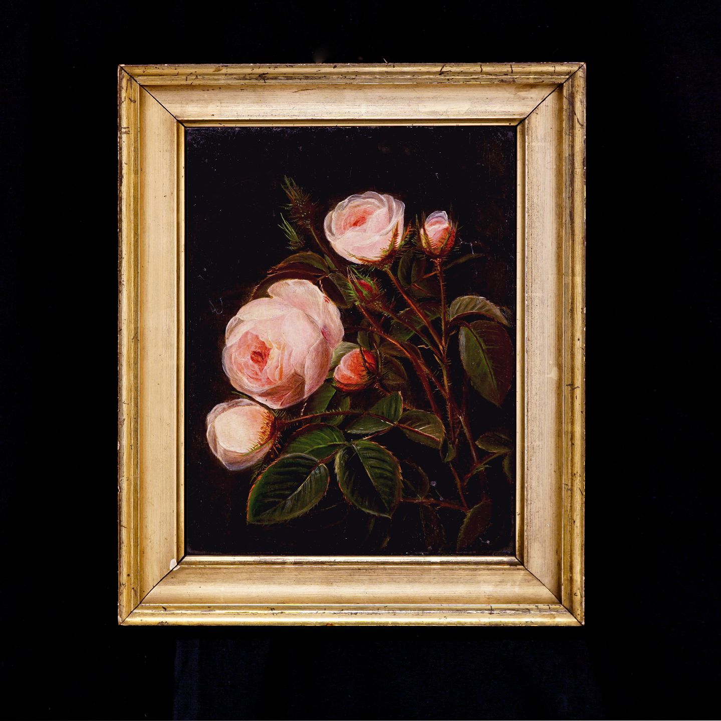 School of I. L. Jensen: Stilleben with roses Denmark circa 1830. Oil on canvas Visible size: 26,5x20cm. With frame: 34,5x28cm Item number: 28186