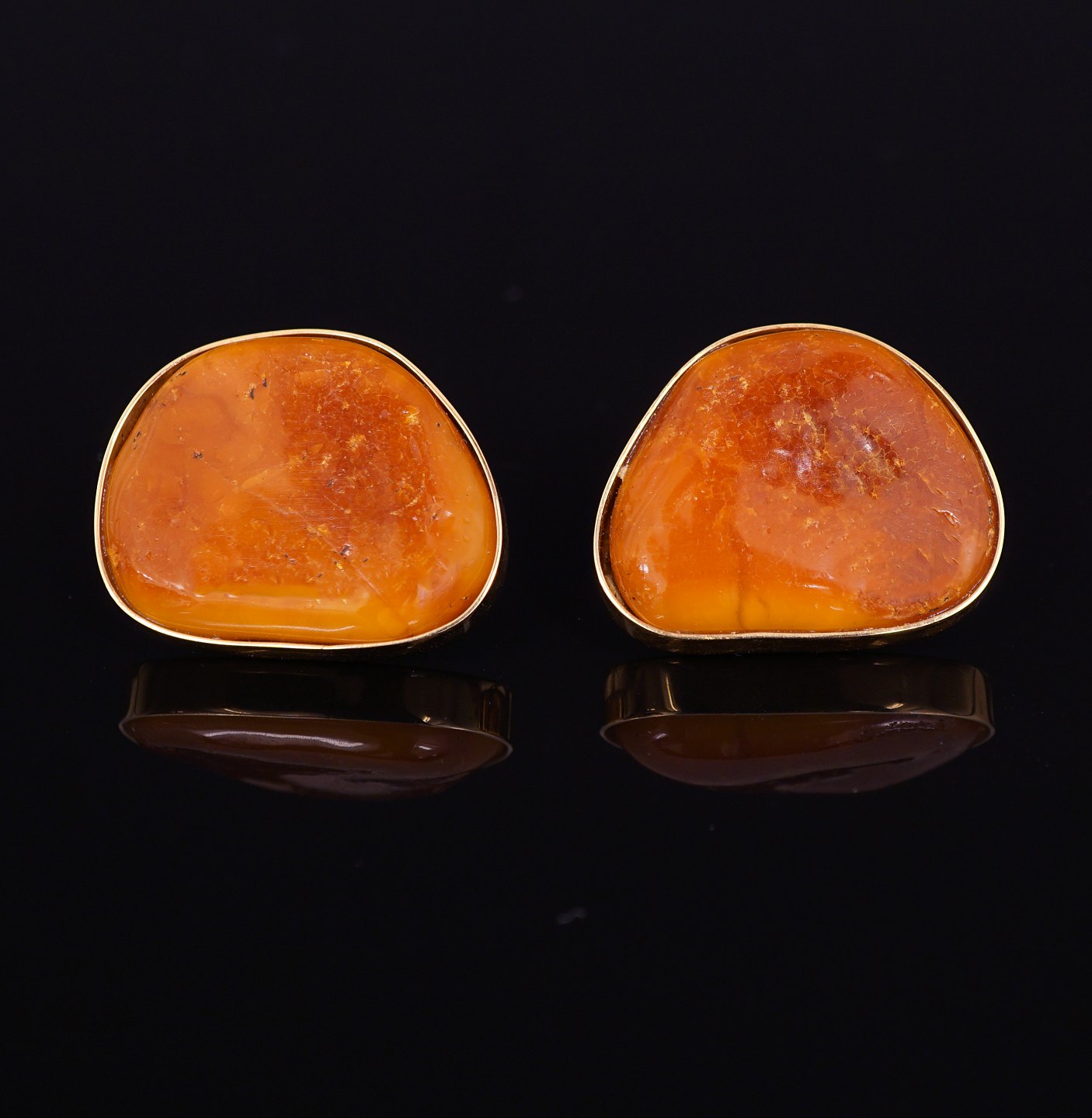A pair of 14ct gold cuff links with amber. Size: 30x24mm