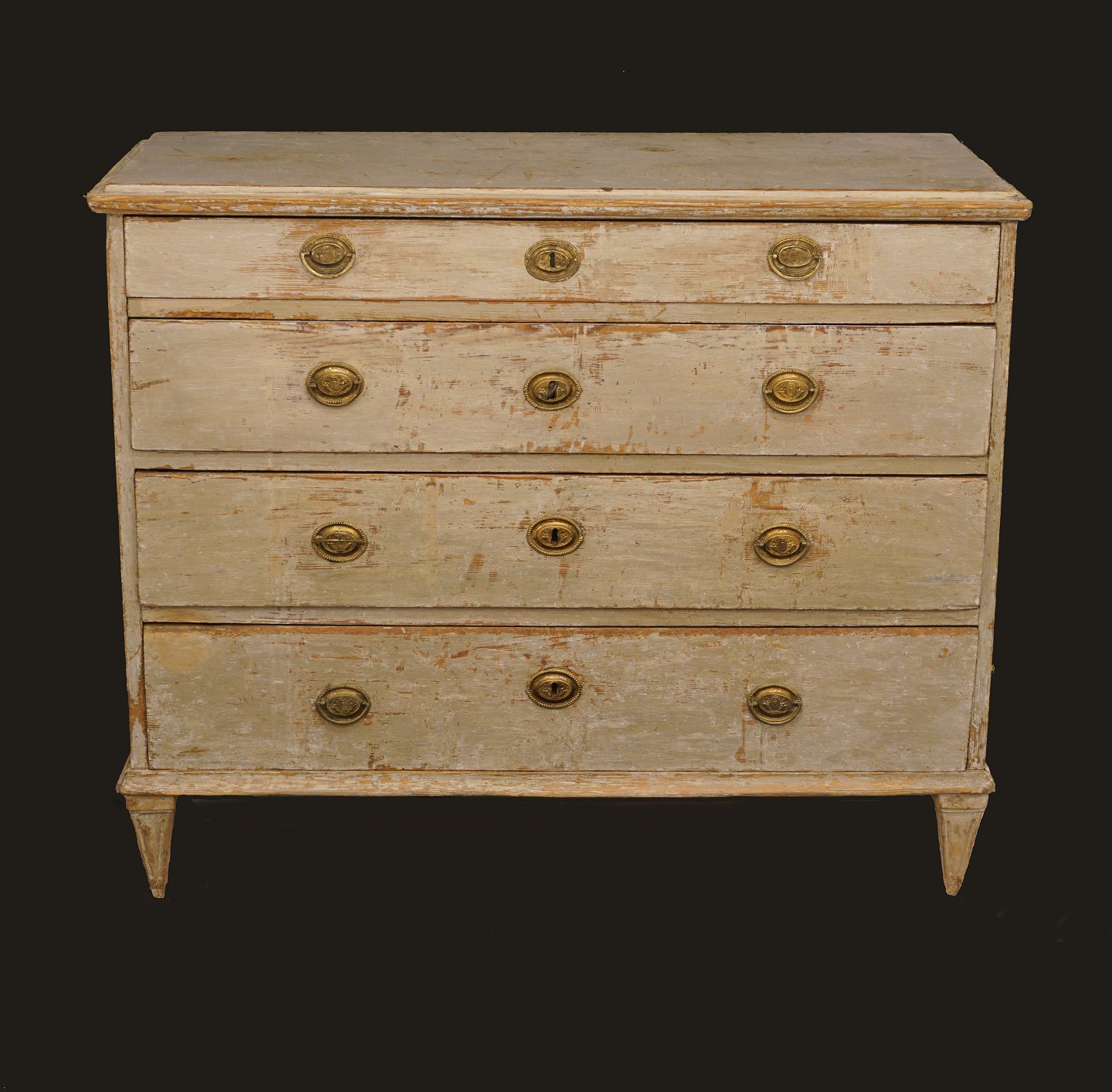 A late 18th century Gustavian chest of drawers in its original colors. Sweden circa 1780-1800. H: 93cm. W: 111cm. D: 47cm