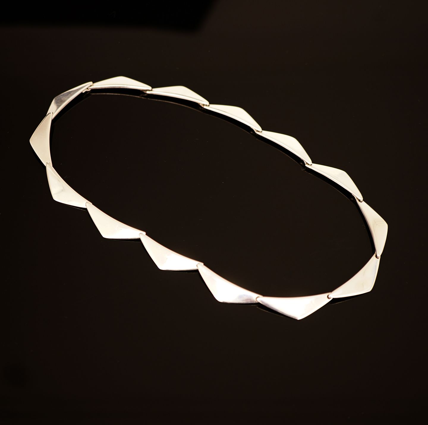 Hans Hansen: Peak halskæde, sterlingsølv. #315. 14 led. L: 43cm