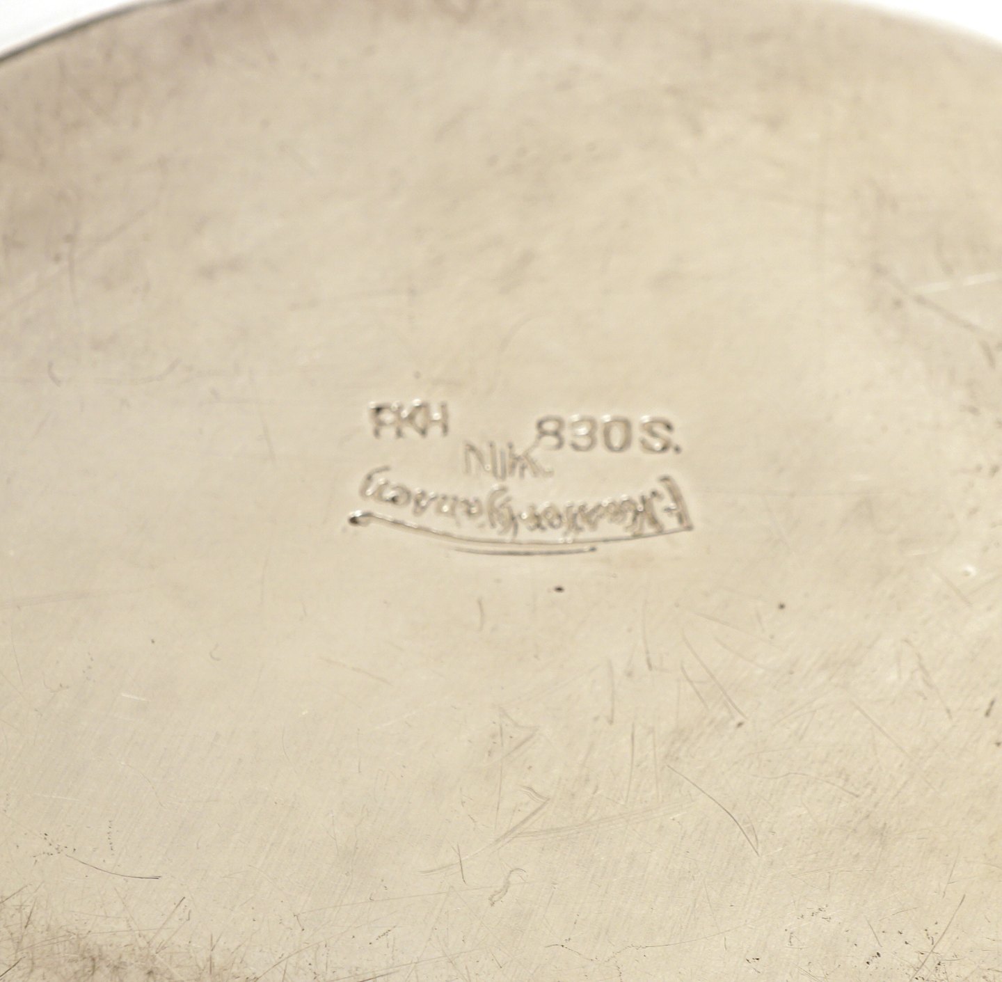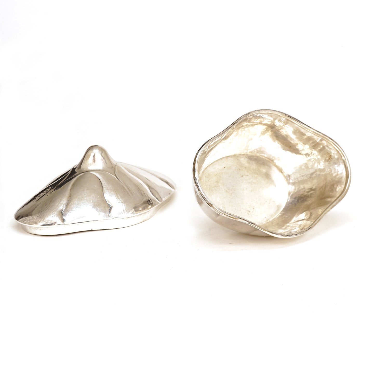 Frederik Kastor Hansen, 1871-1918: Lille bonbonniere af let hammerslået sølv. H: 9,1cm. L: 13cm. V: 234gr