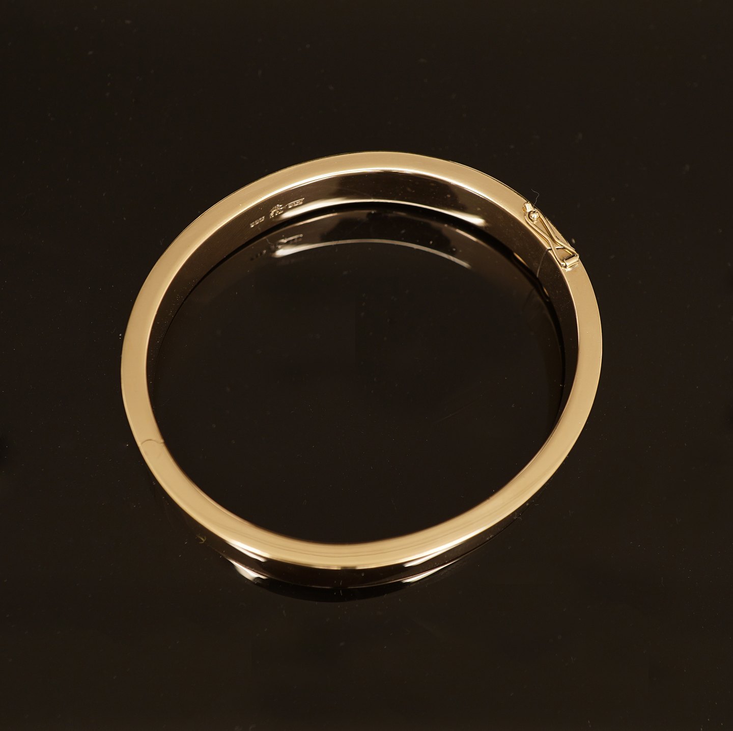 Frantz Hingelberg, Aarhus: Oval armring i 14kt guld. Indv. mål: 6x5,3cm. V: 28,4gr