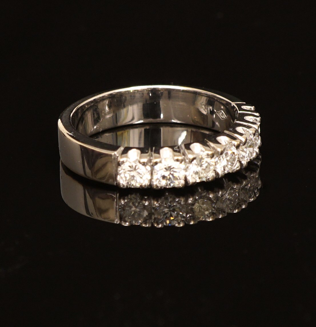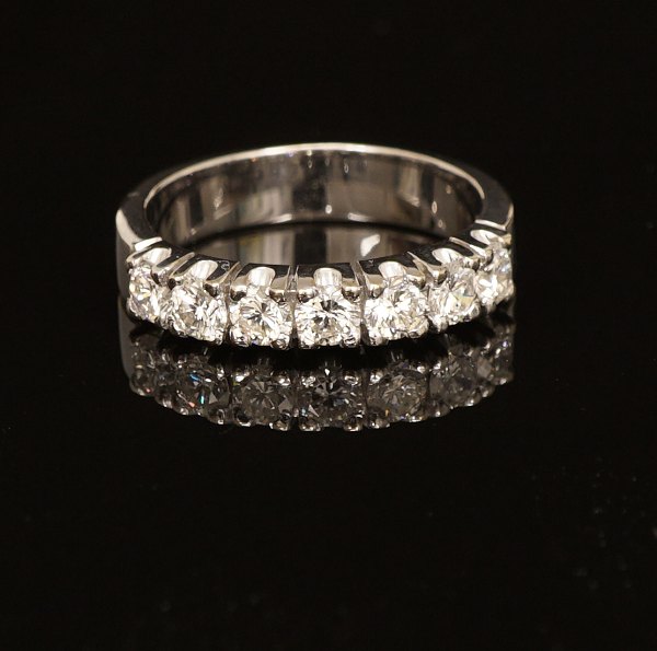 Jørgen Rasmussen, København: Alliancering i 18kt hvidguld med 7 brillanter på i alt ca. 1,05ct. Farve: Top Wesselton. Klarhed: VS. Ringstr. 55