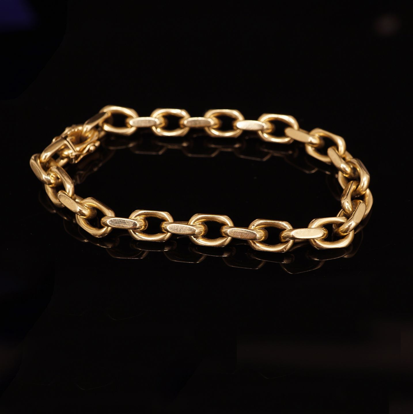 Kraftig ankerkæde i 14kt guld med kasse- og dobbelt sikkerhedslås. L: 21cm. V: 45,3gr