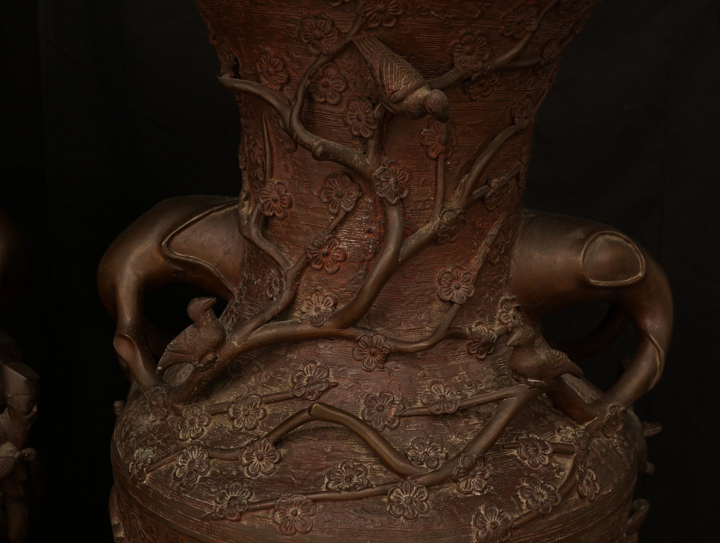 A pair of large bronze vases China circa 1870-80 From the Danish castle Sophienberg at Copenhagen H: 110cm Item number: 28200