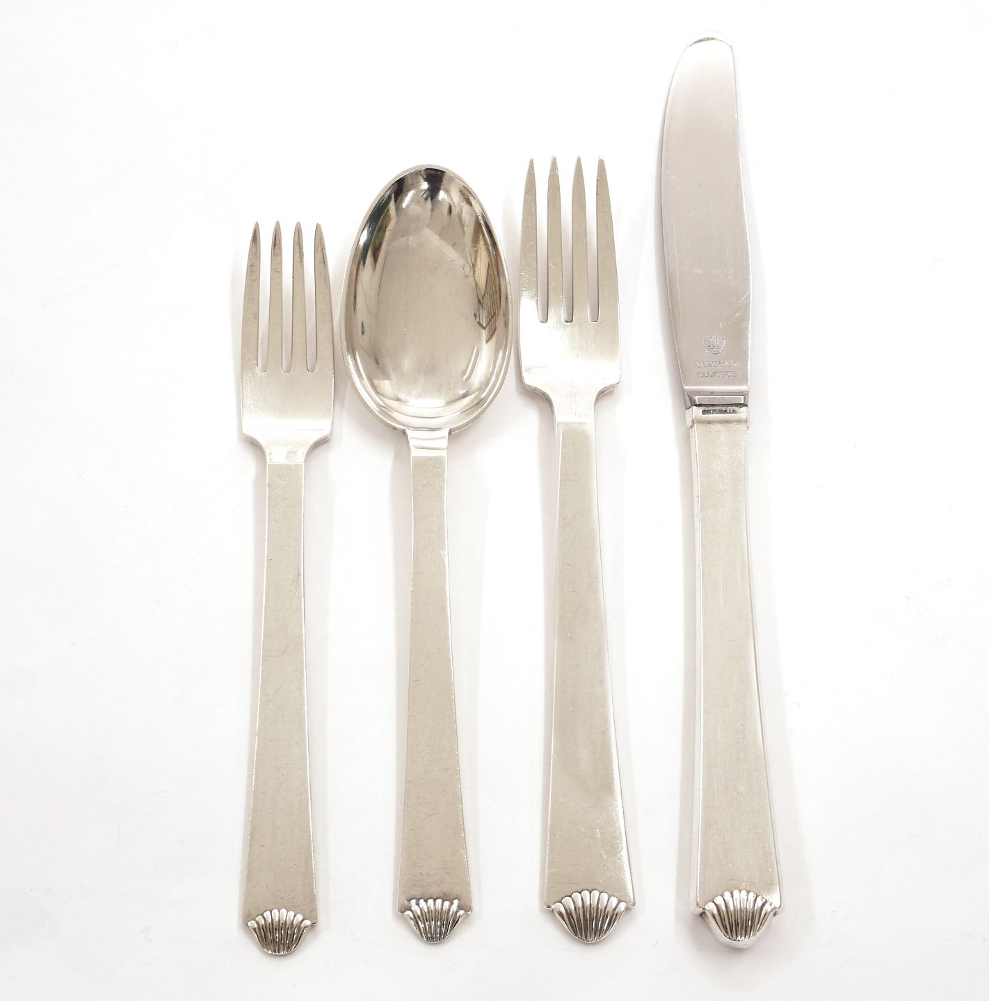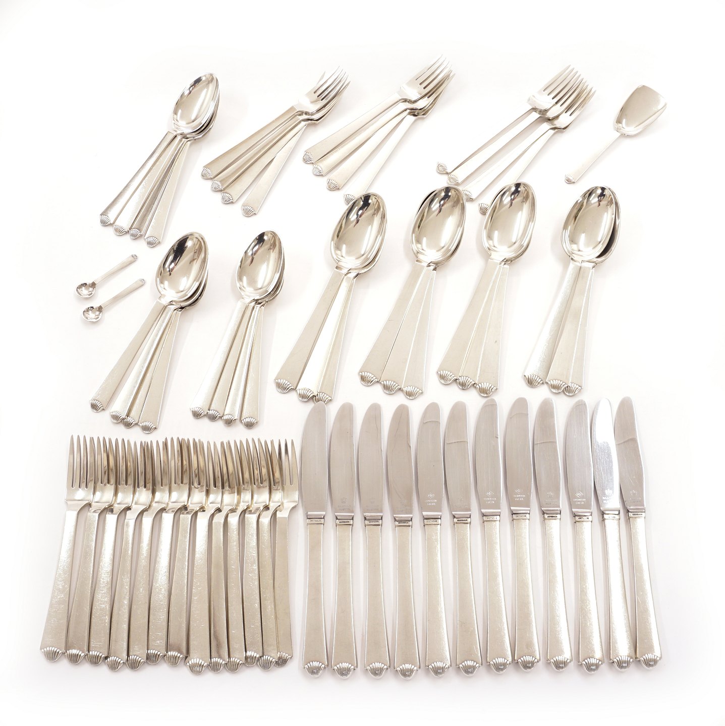 Hans Hansen, Kolding, Denmark Silver cutlery set 63 pieces Item number: 28589