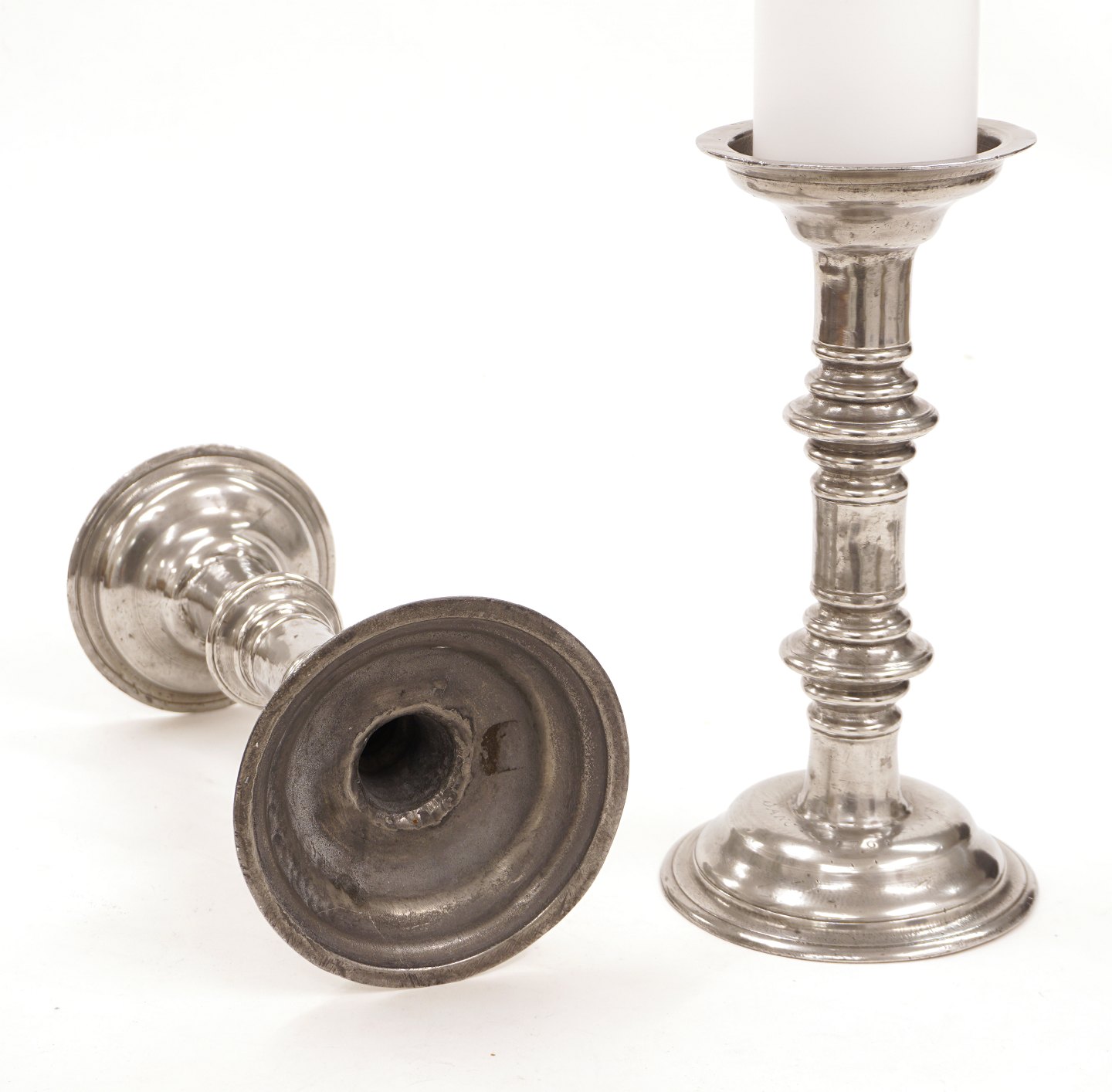 A pair of mid 18th century Baroque church candlesticks with the engraving "Sankt Paulus 1761". H: 28cm. F D: 14cm