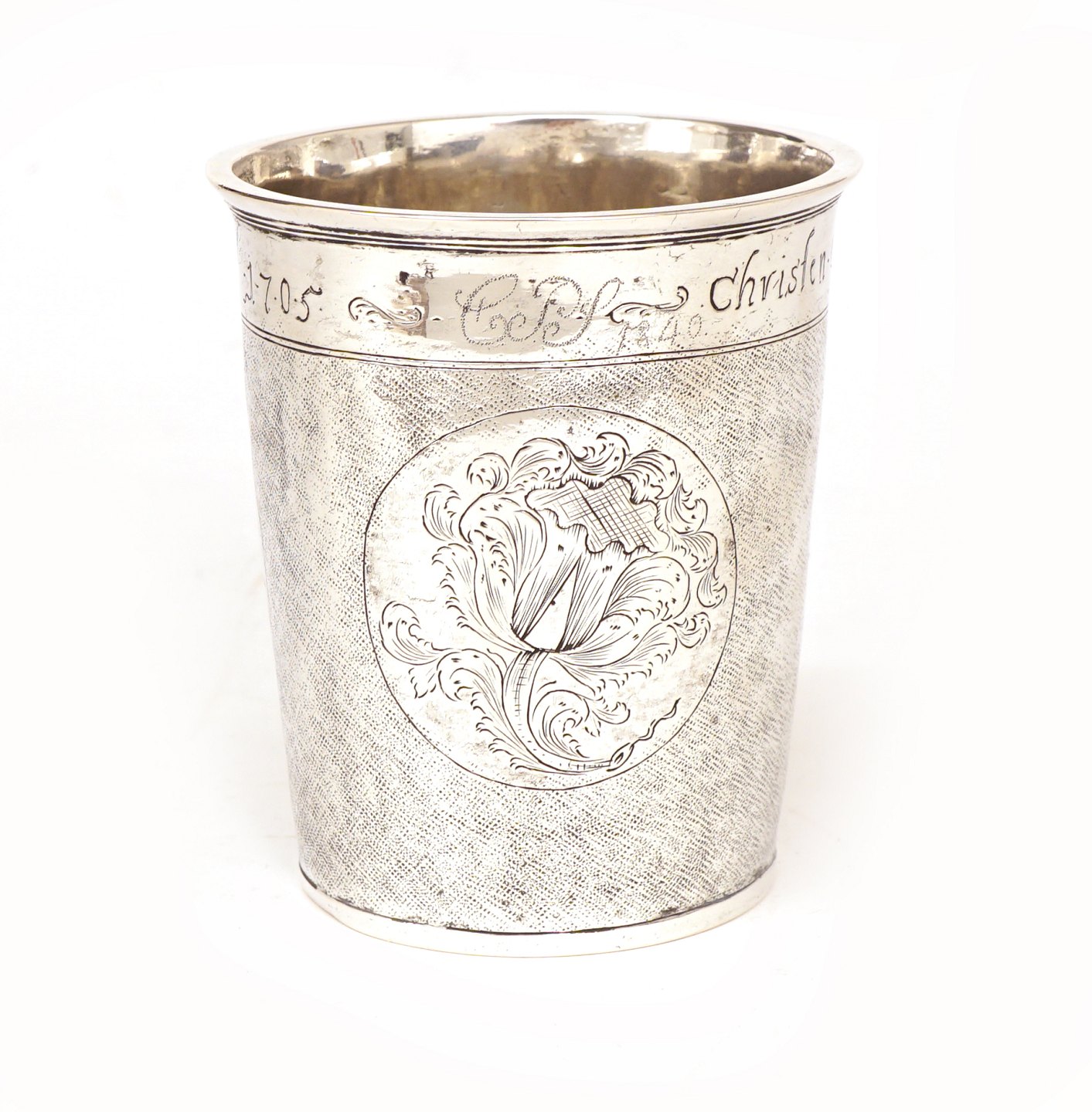 A Danish baroque Silber cup. Made by Clemens Sørensen, Aarhus, 1661-91. H: 9,8cm. W: 158gr
