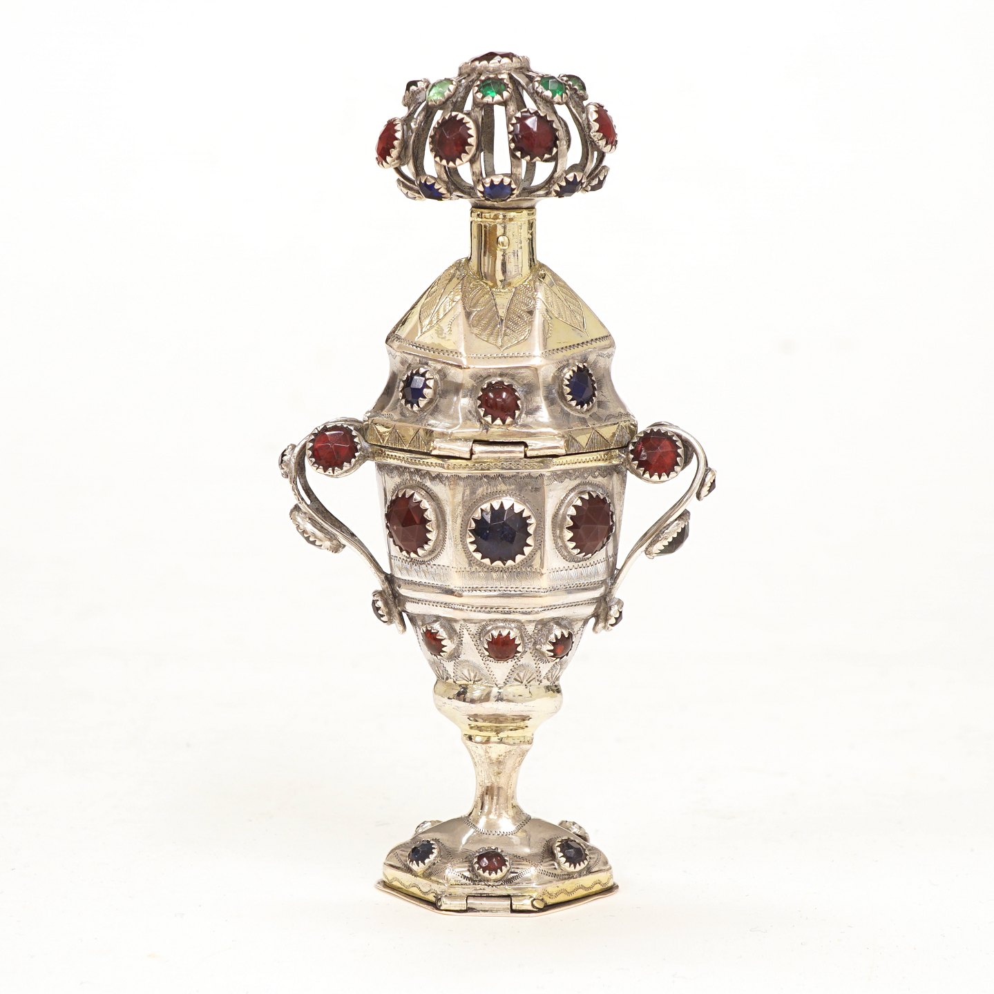 Georg Frederik Biehl, Sønderborg: Hovedvandsæg af sølv med 53 flusser. Stemplet. H: 14cm. V: 104gr