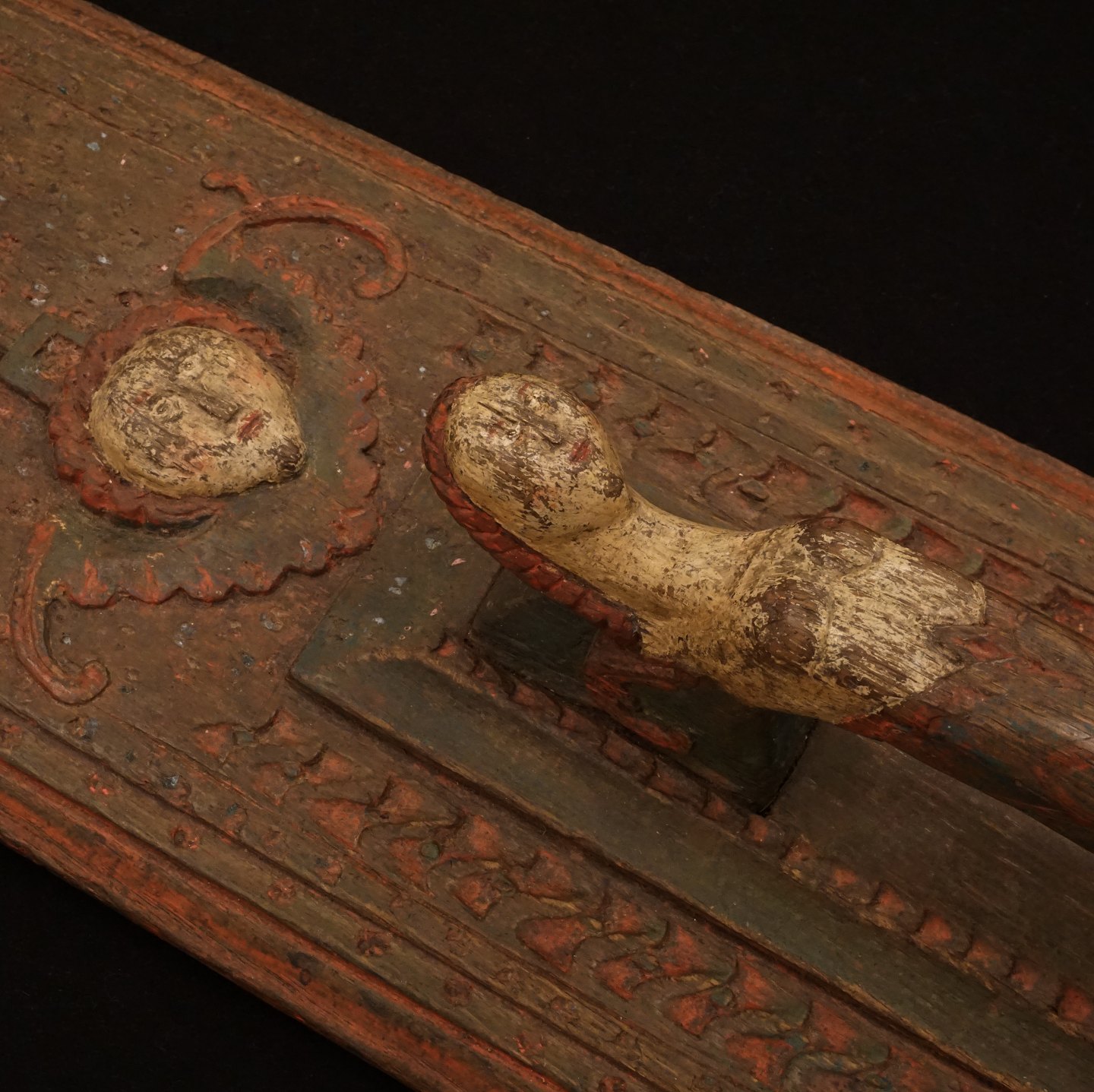 Wood carved mangle board with mermaid handle. Denmark 17th century. H: 55cm