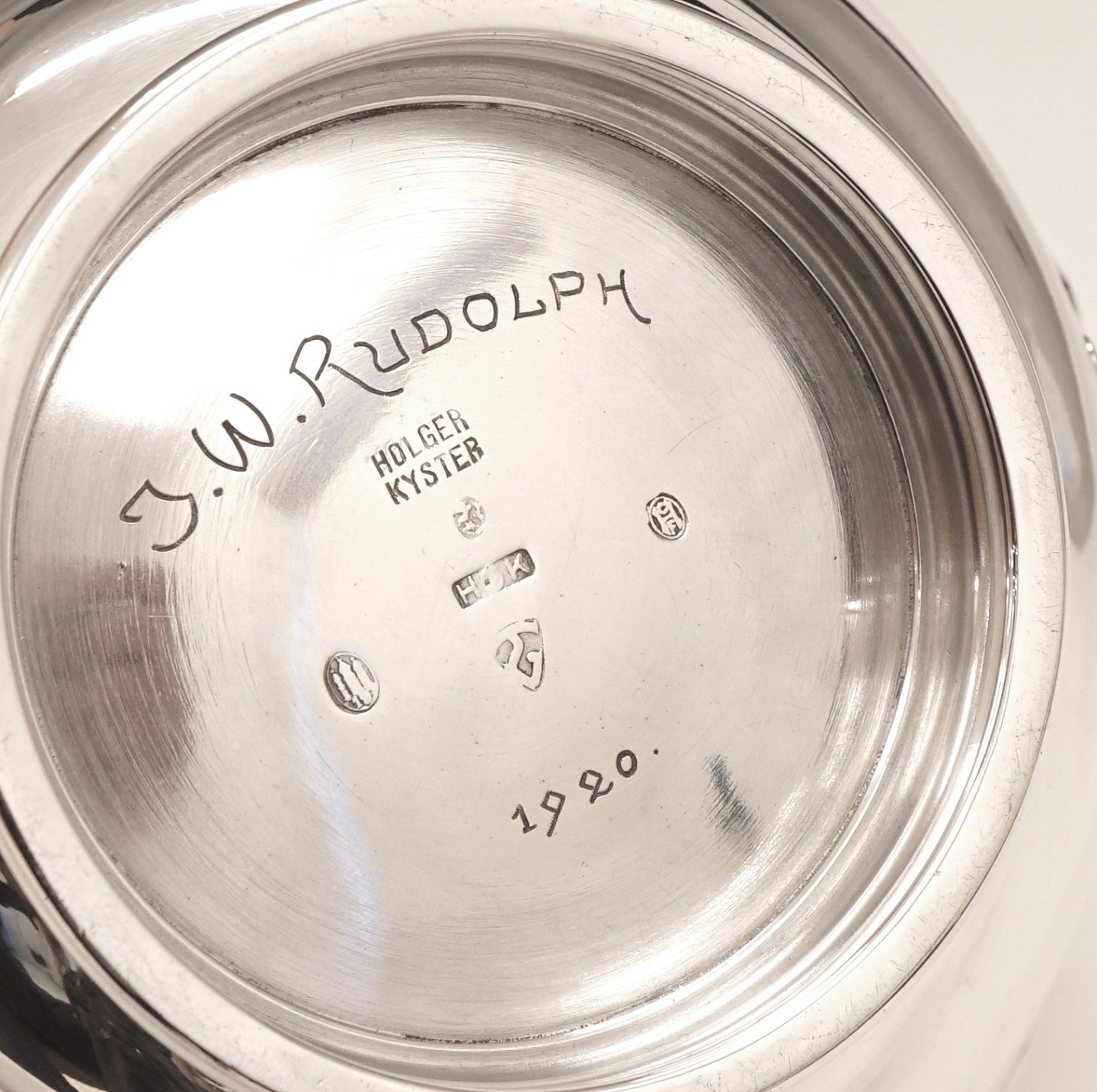 Thorvald Bindesbøll for Holger Kyster: A rare silverbowl. Dated 1919. H: 9,1cm. D: 15cm. W: 262gr