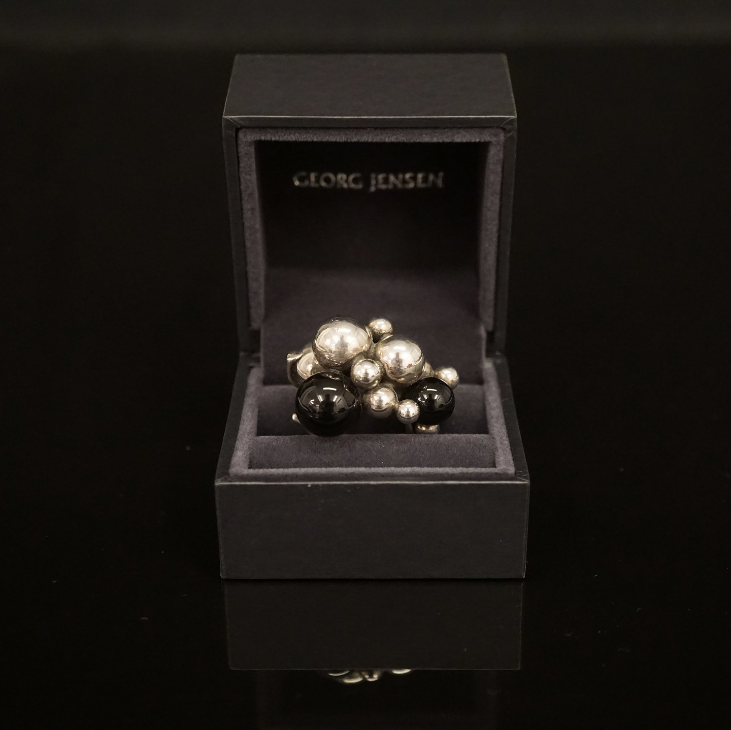 Georg Jensen: Moonlight Grapes ring i sterlingsølv med sort agat
