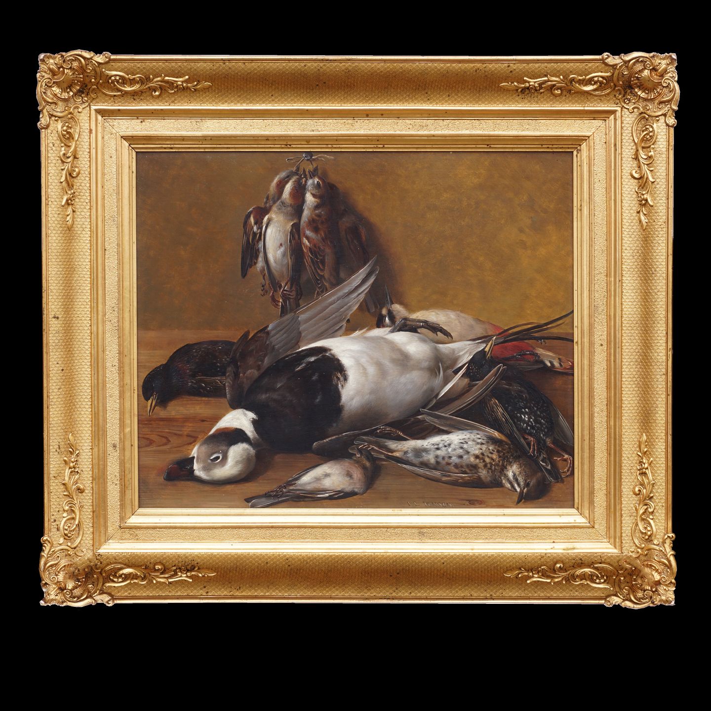 I. L. Jensen, Denmark, 1800-56: Nature morte. Oil on wood. Signed circa 1830. Visible size: 35x43cm. With frame: 54x62cm