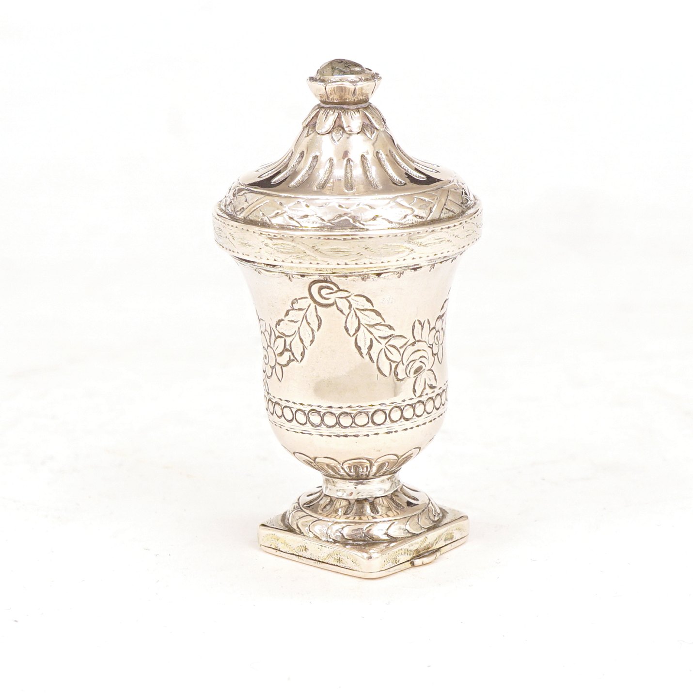 stiliserede blomster. Dateret 1776. H: 10cm. D:
