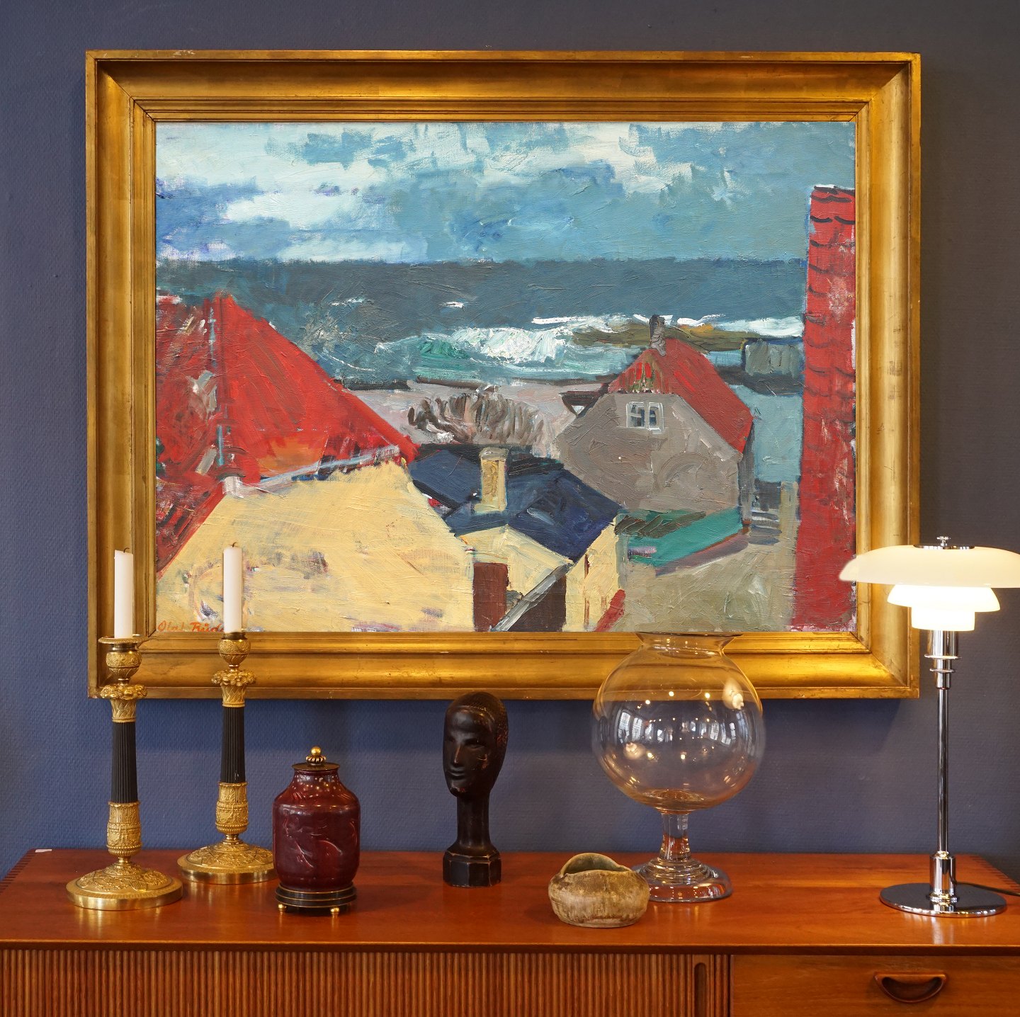 Olaf Rude, 1886-1957, oil on canvas: A view from Gudhjem at the island, Bornholm, Denmark. Signed and dated 1932. Visible size: 73x100cm. With frame: 90x117cm