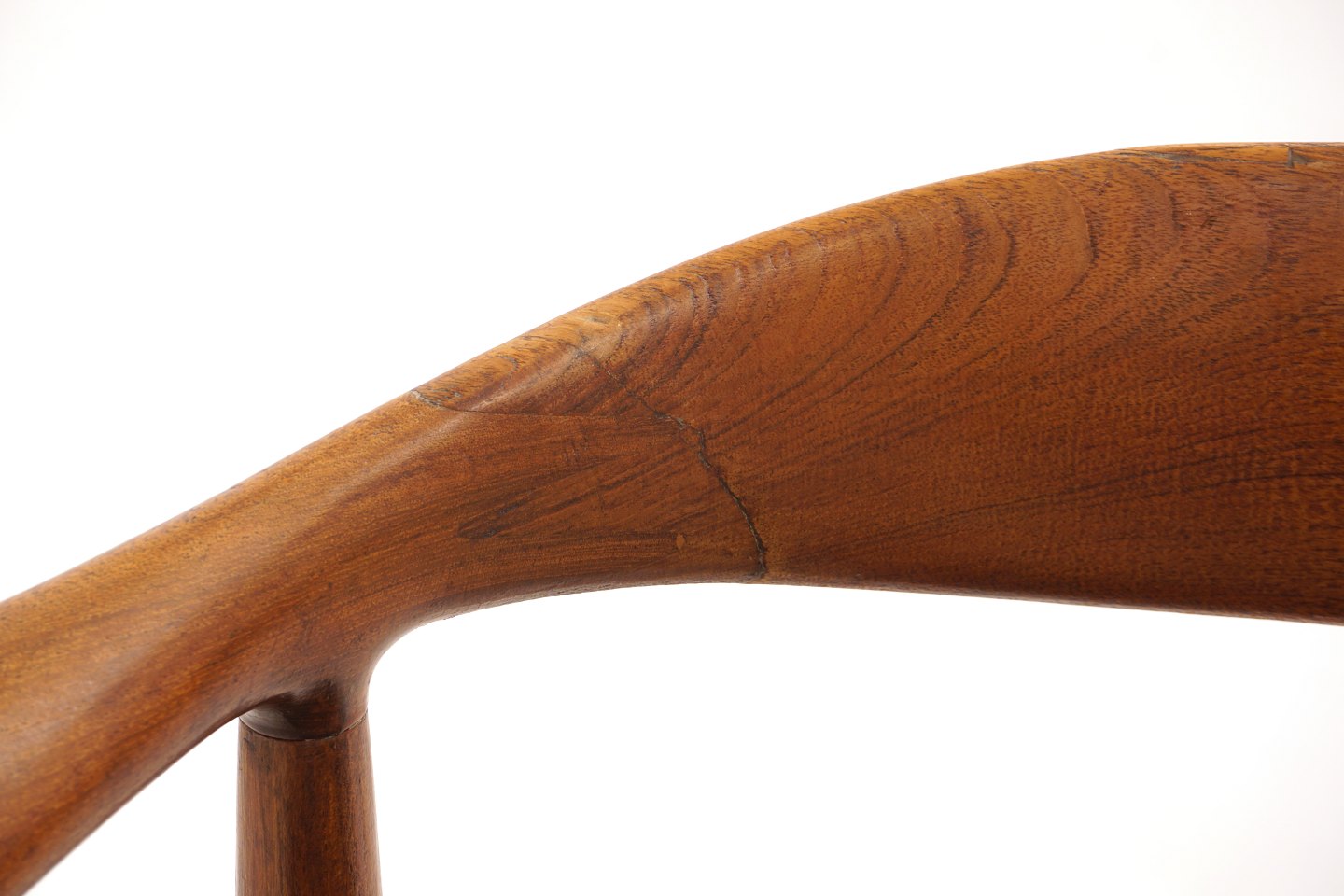 Hans J. Wegner, 1914-2007: The Chair i teak. Rygstykke med repareret brud. Se venligst foto. Stolen fremstår ellers stabil og brugbar. Sæde med sort læder