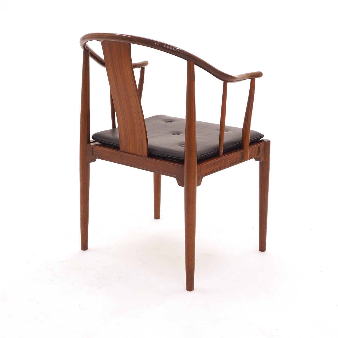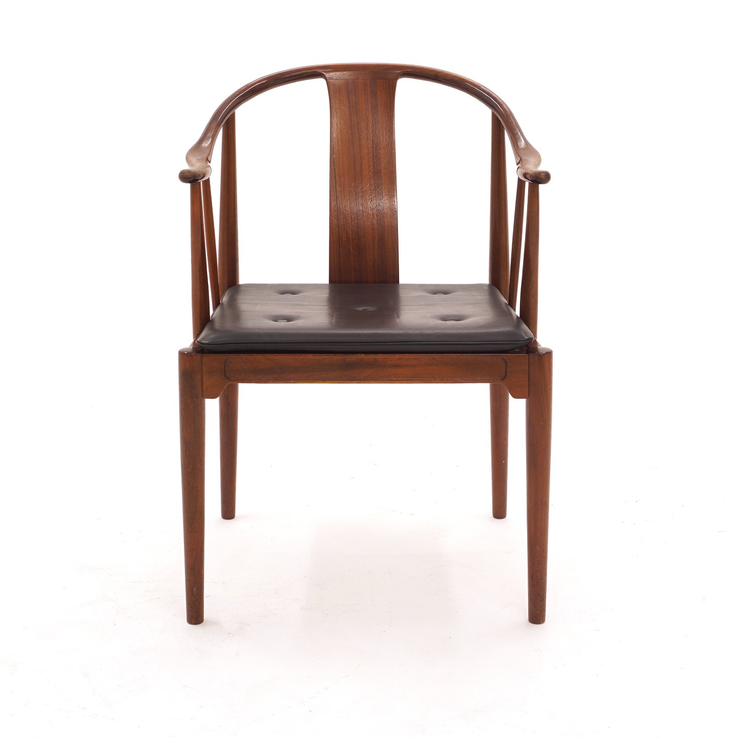 Hans J. Wegner, 1914-2007: Kinastolen i mahogni. Med etiket fra Illums Bolighus. Leveres med ny sort læderhynde. God stand. Armlæn med lettere patinering