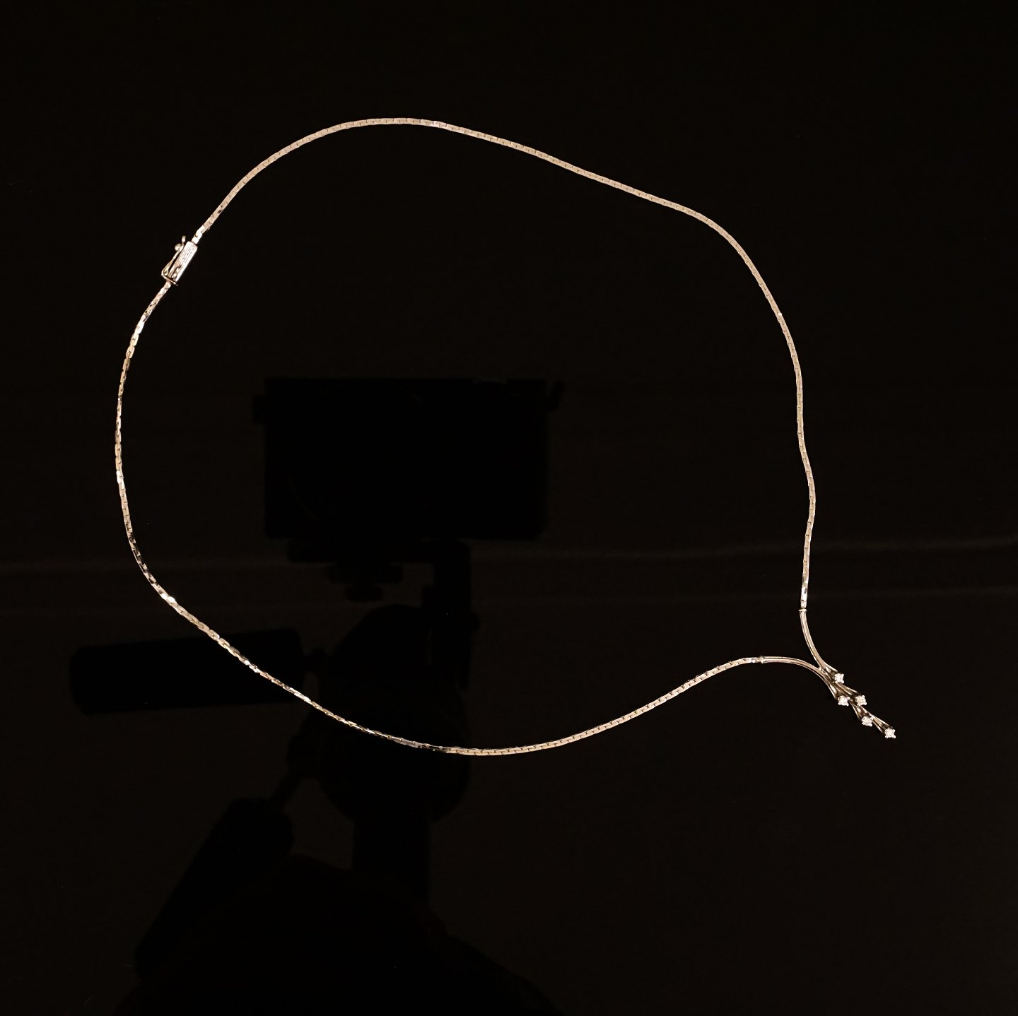 A Set of 14kt white gold necklace and earrings with diamonds L necklace: 43cm Item number: 33572