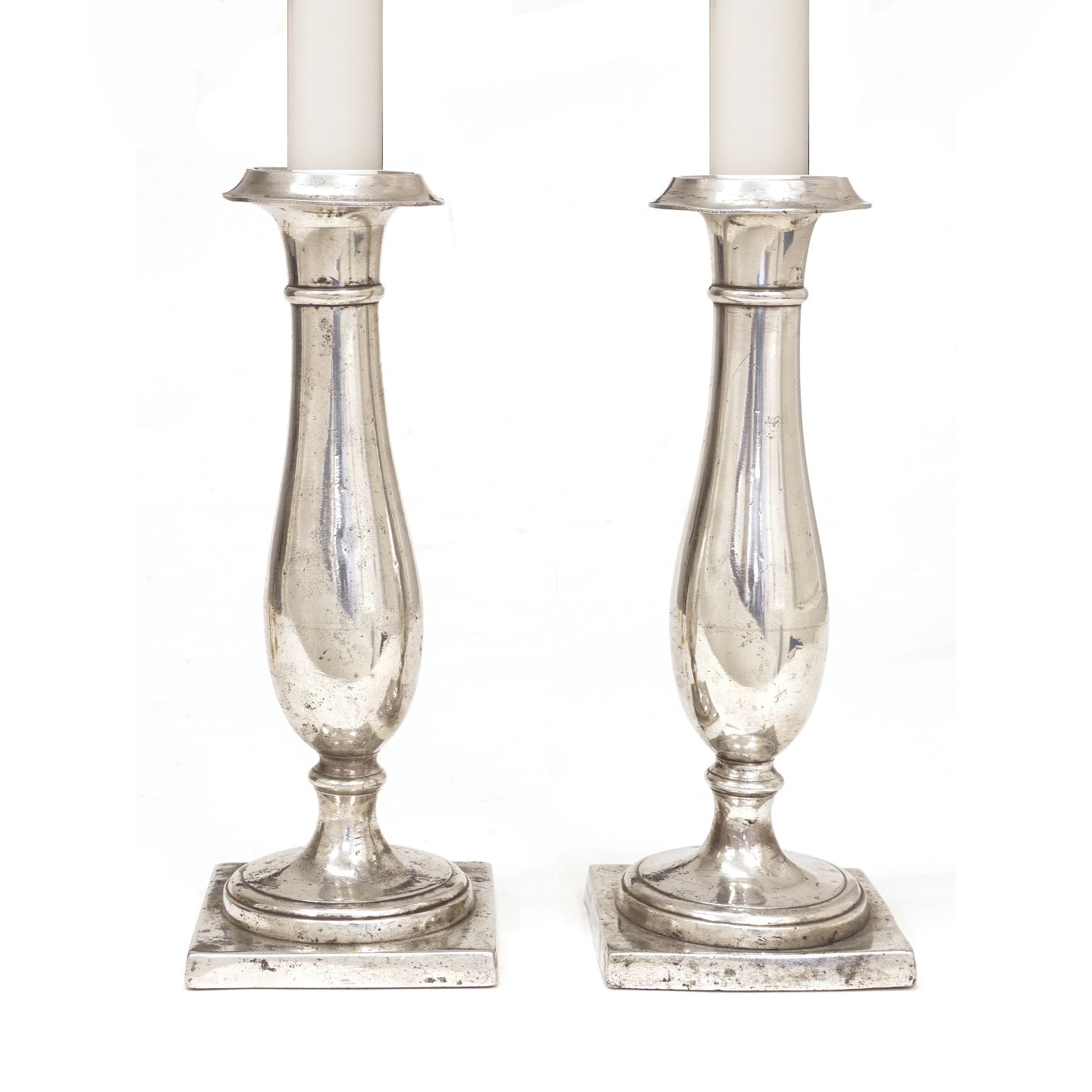 Et par tulipanformede tinstager. Danmark ca. år 1830. H: 22cm